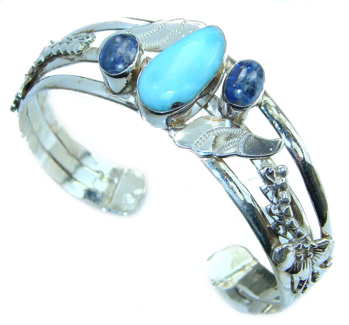 Perfect Harmony Blue Larimar Kyanite .925 Sterling Silver handcrafted Bracelet / Cuff