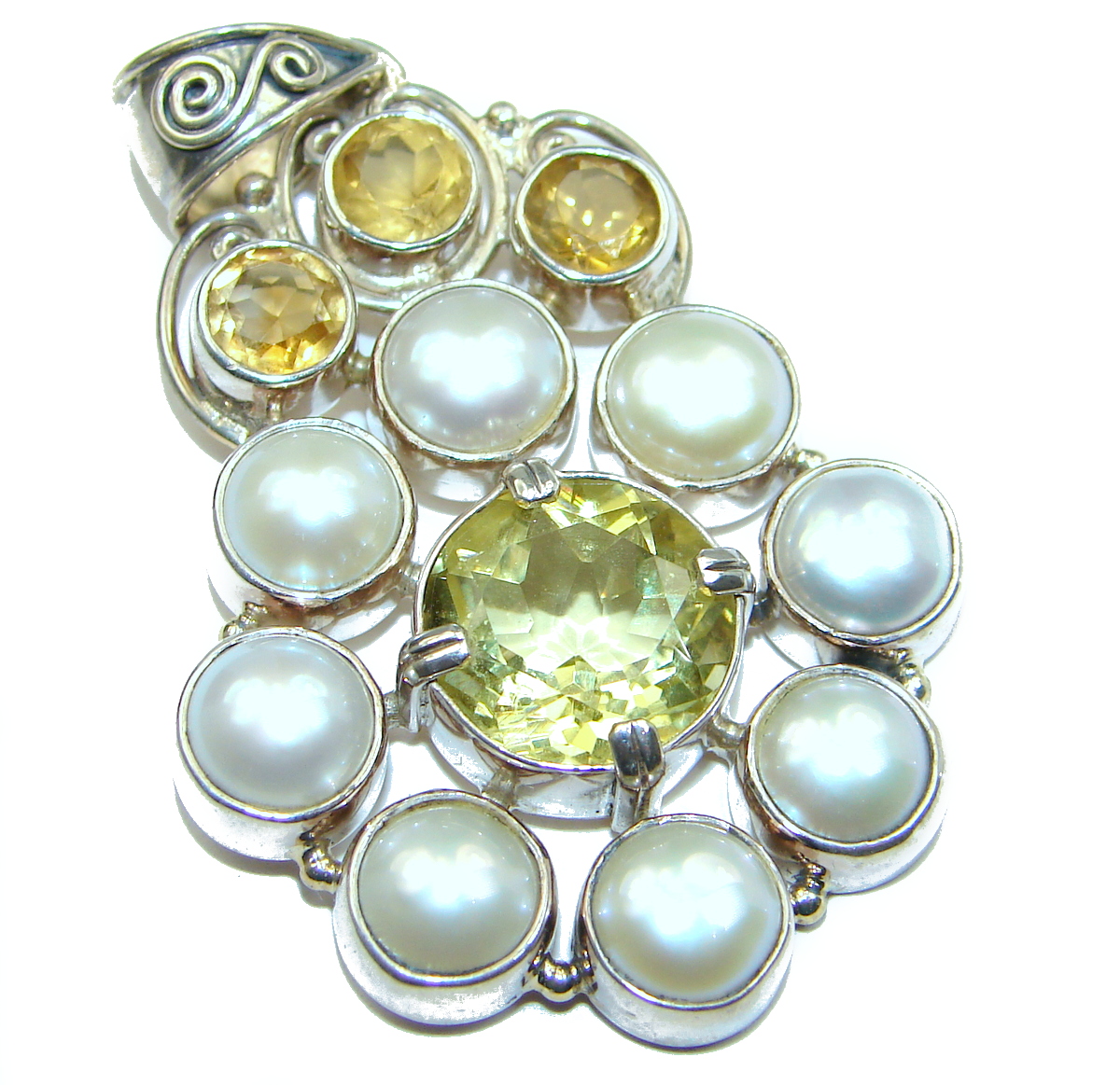 White Fresh Water Pearl & Citrine .925 Sterling Silver handcrafted pendant