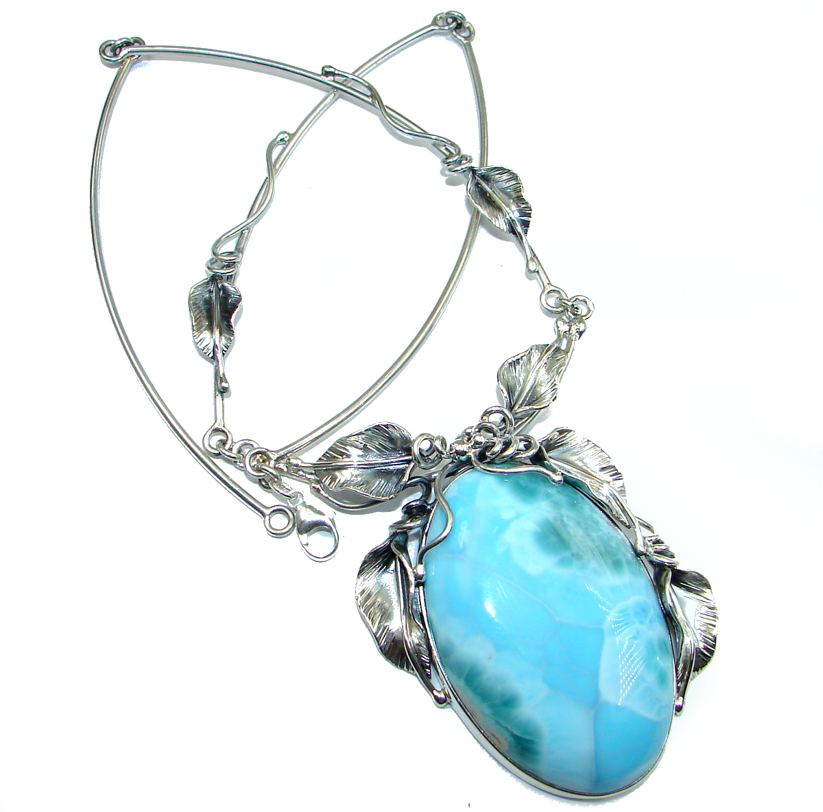 Large One of the kind Nature inspired Sublime Larimar .925 Sterling Silver handmade necklace