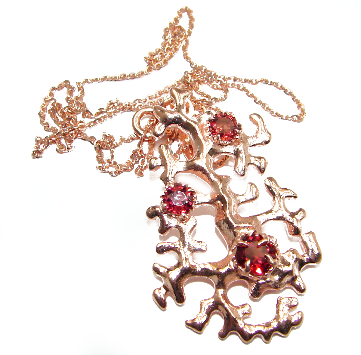 Fine Art Genuine Garnet 14K Rose Gold over .925 Sterling Silver handmade necklace