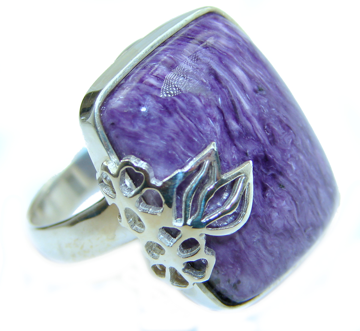 Natural Siberian Charoite .925 Sterling Silver handcrafted ring size 8