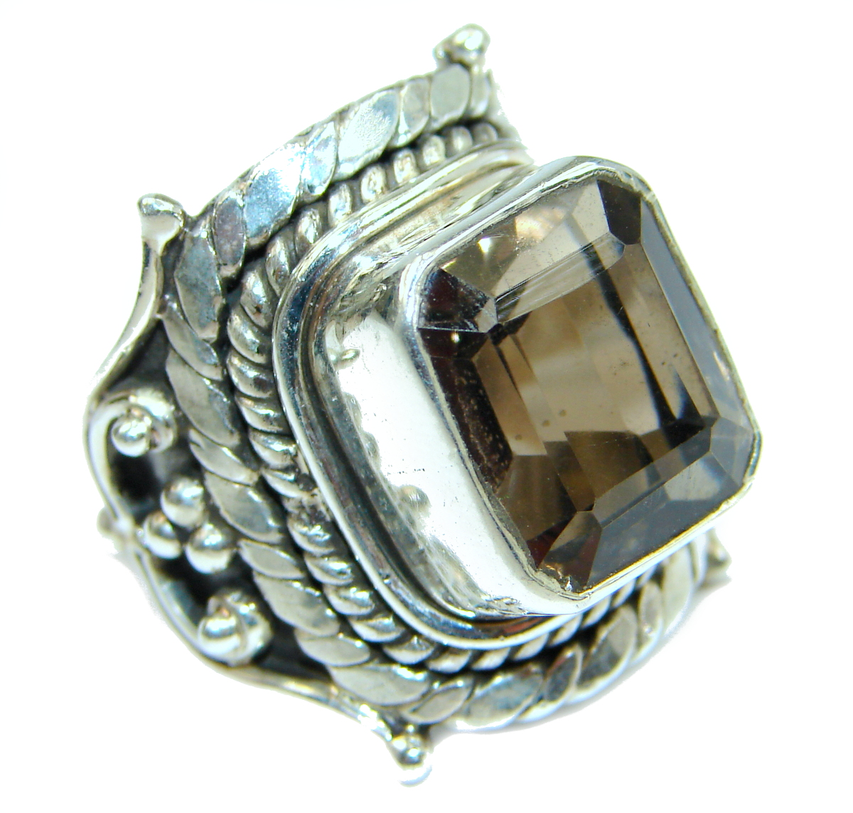 Vintage Style Smoky Topaz .925 Sterling Silver handmade Cocktail Ring s. 7 1/4
