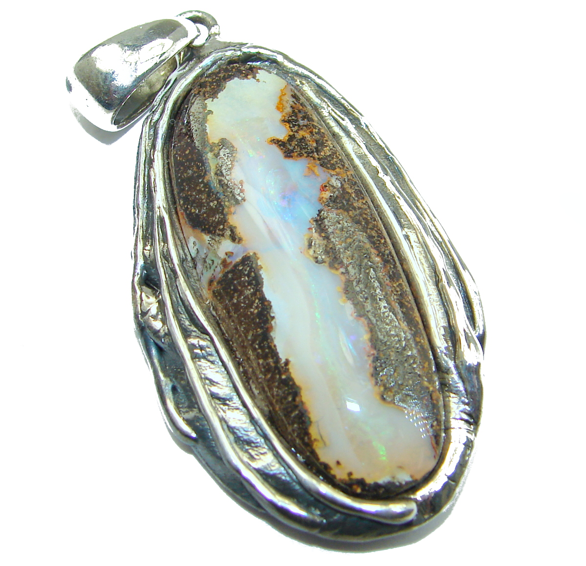 Authentic Australian Boulder Opal .925 Sterling Silver handmade Pendant