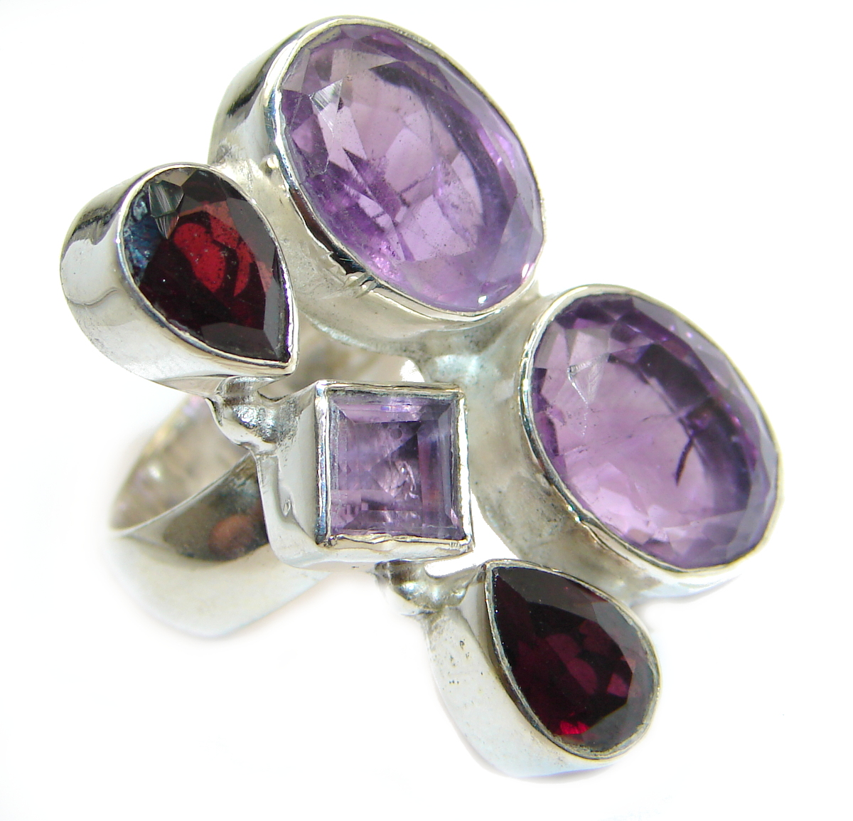 Natural Amethyst .925 Sterling Silver handmade Cocktail Ring s. 7