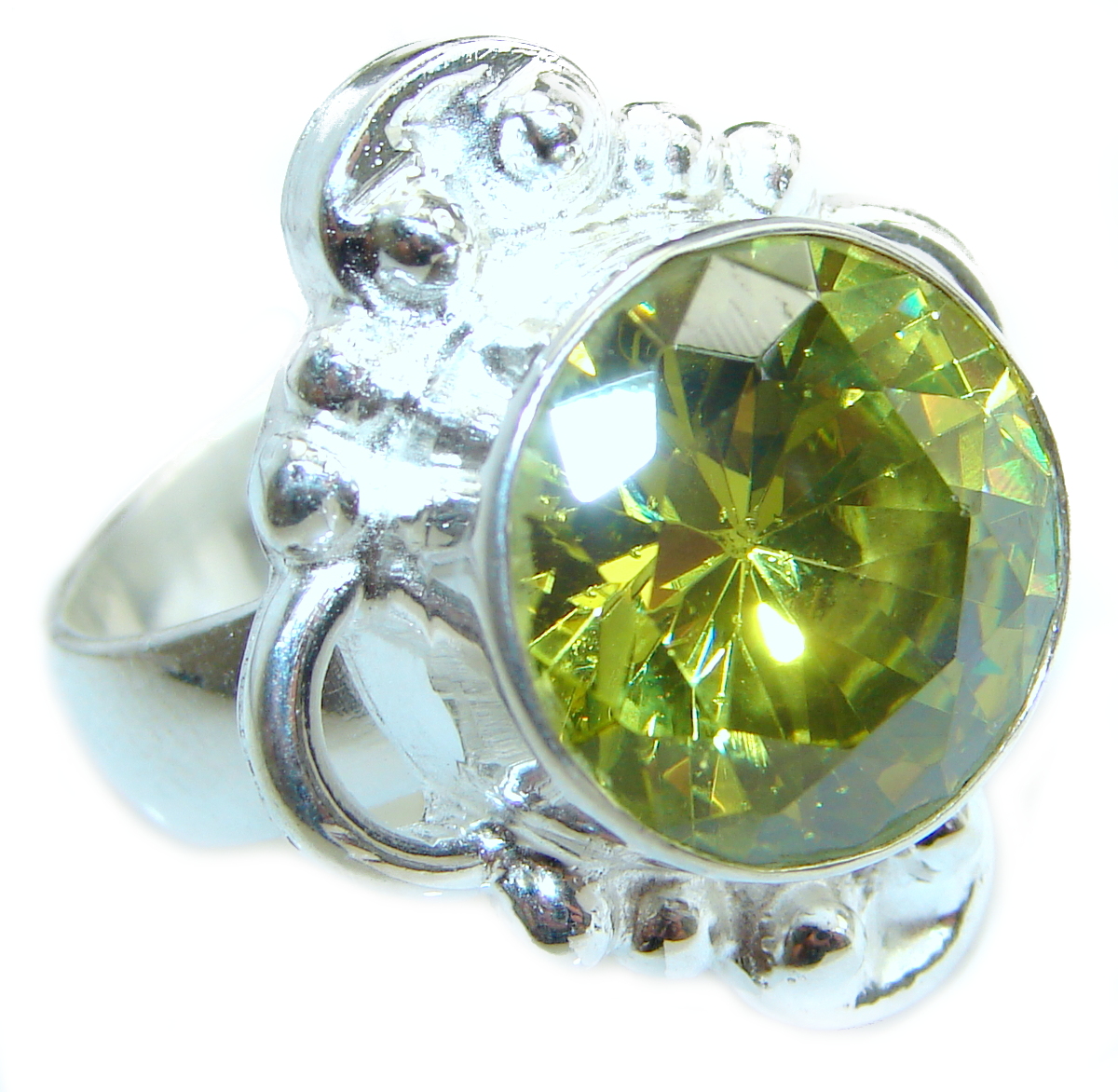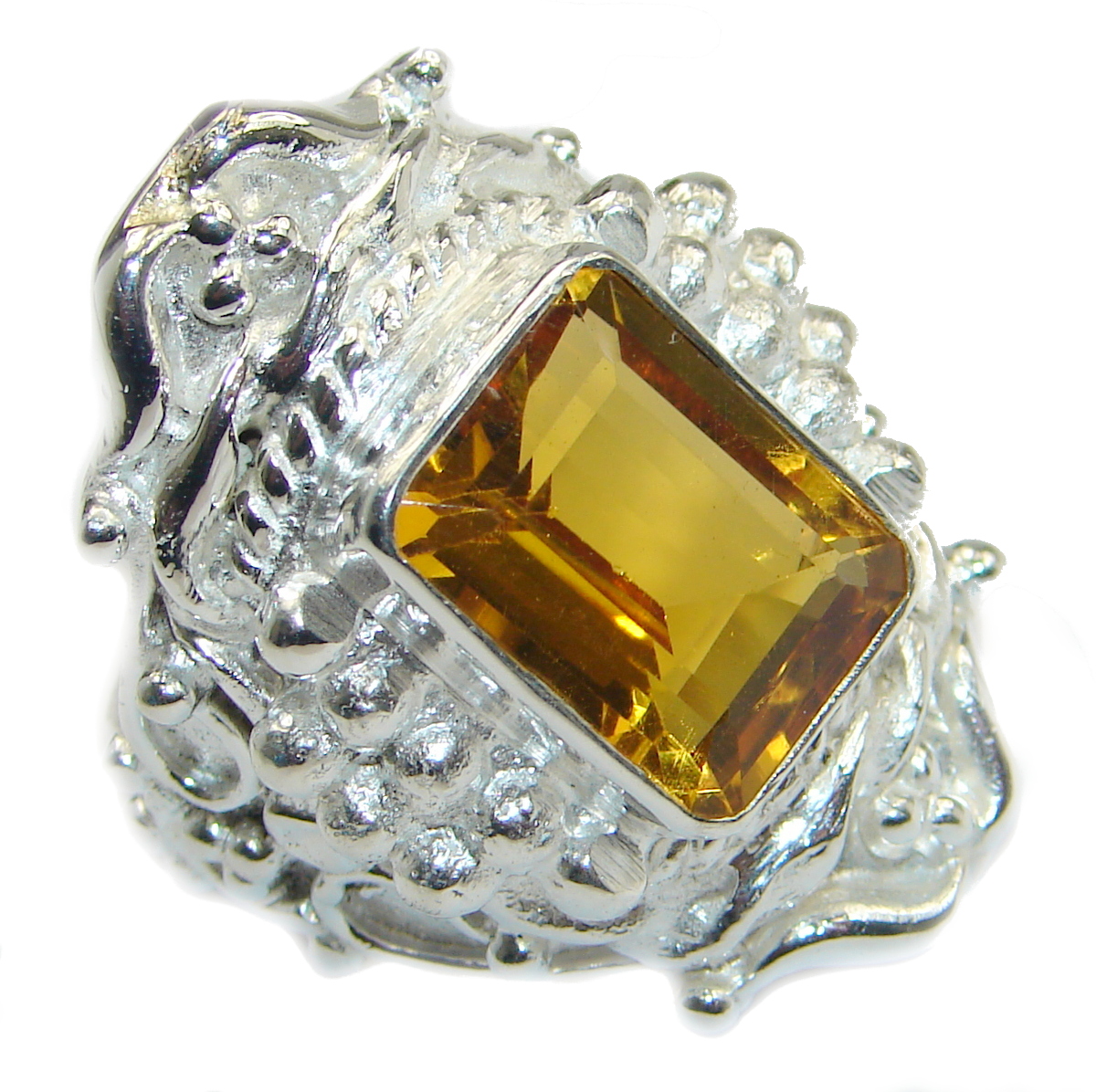Huge Incredible Lemon Quartz .925 Sterling Silver Ring s. 8 3/4