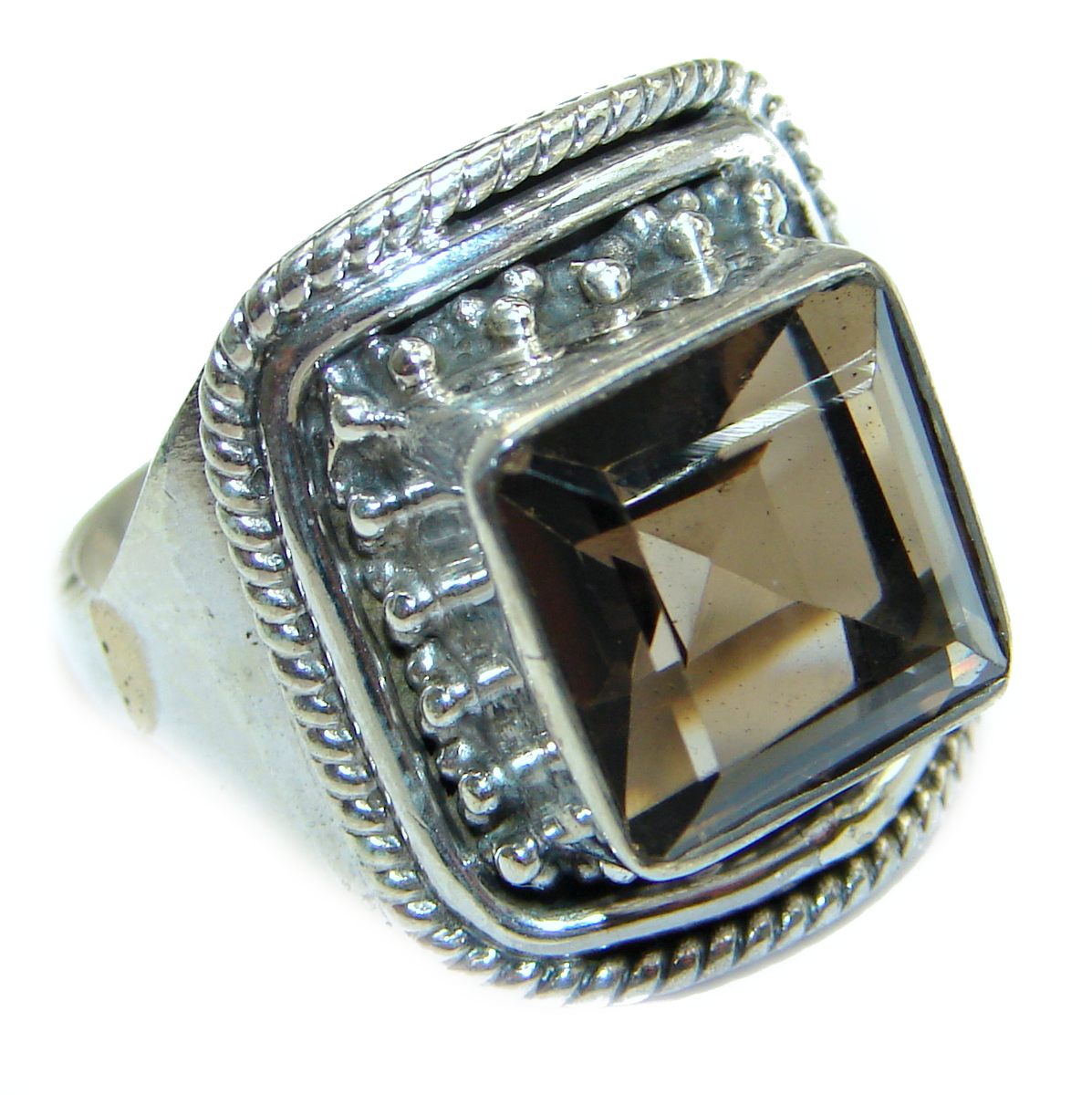 Dramatic Design Smoky Topaz .925 Sterling Silver handmade Cocktail Ring s. 7