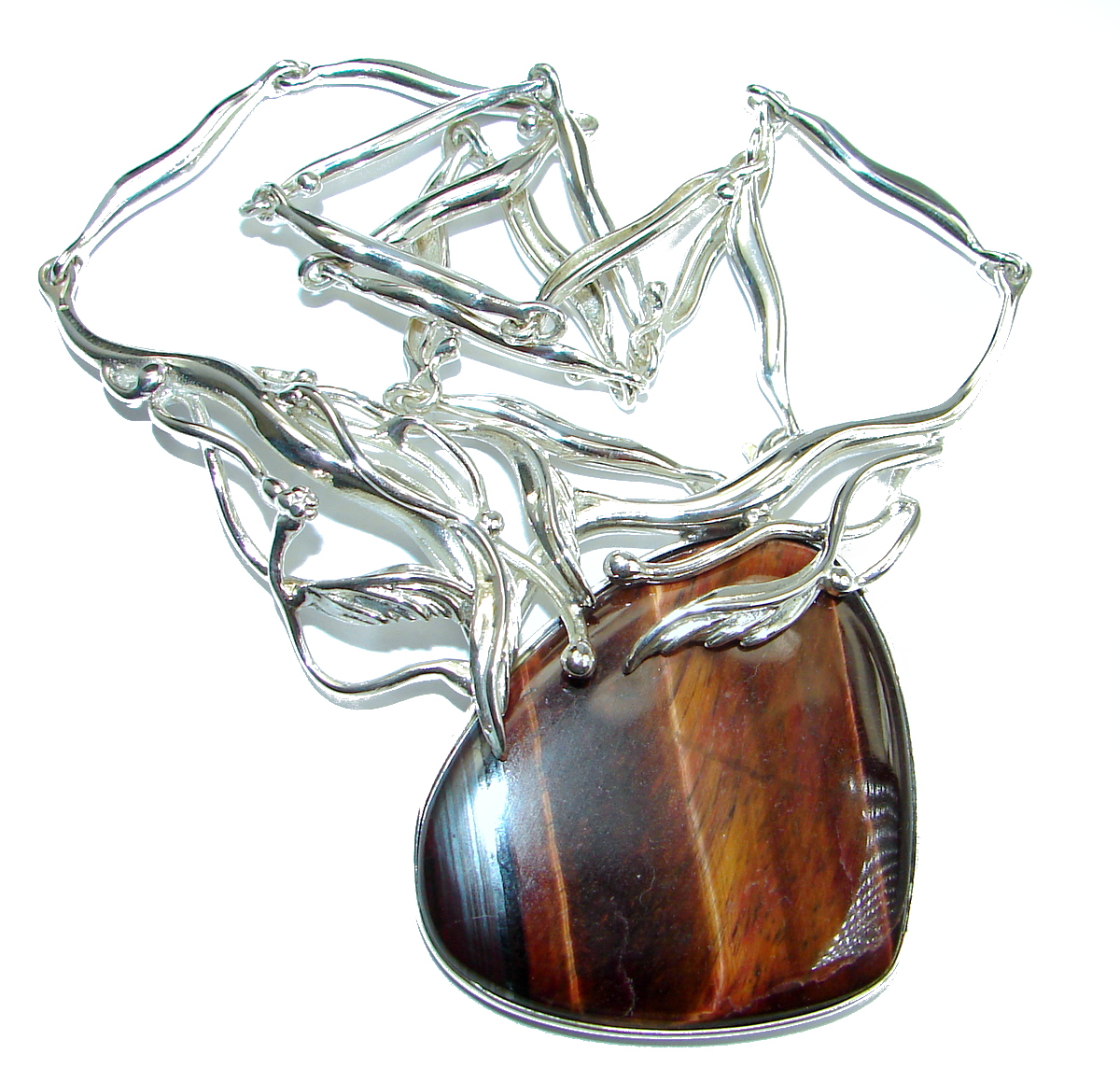 Europian Design AAA Tigers Eye .925 Sterling Silver handcrafted necklace