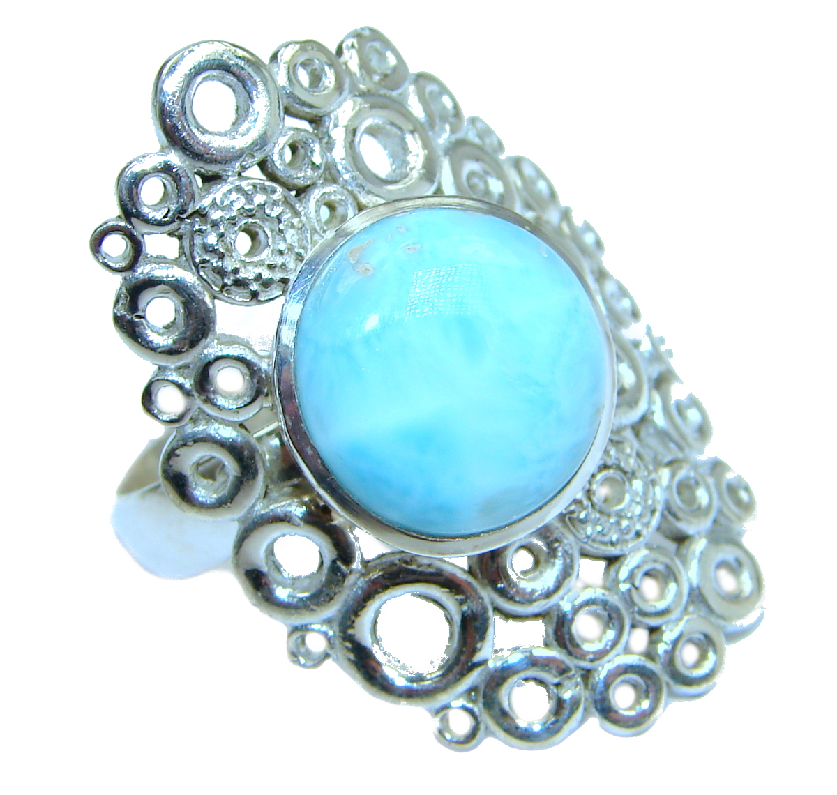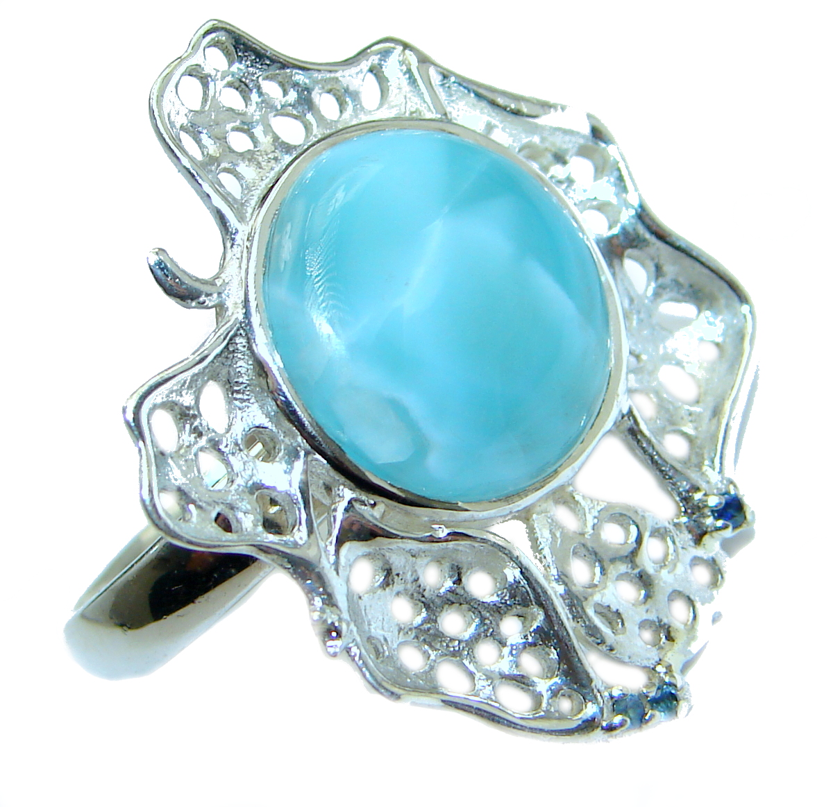 Natural Larimar Sapphire .925 Sterling Silver handcrafted Ring s. 7 1/4