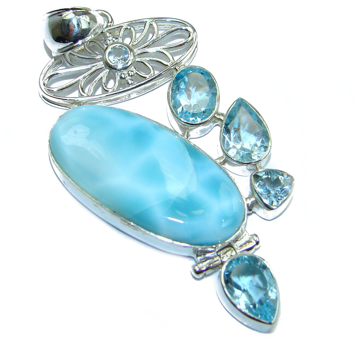 Blue Beauty genuine Larimar .925 Sterling Silver handmade pendant