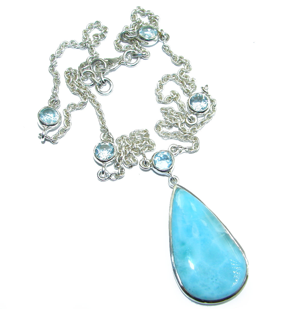 Great Masterpiece genuine Larimar .925 Sterling Silver handmade necklace