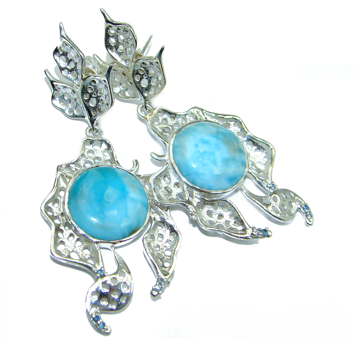 Precious genuine Blue Larimar Kyanite .925 Sterling Silver handmade earrings