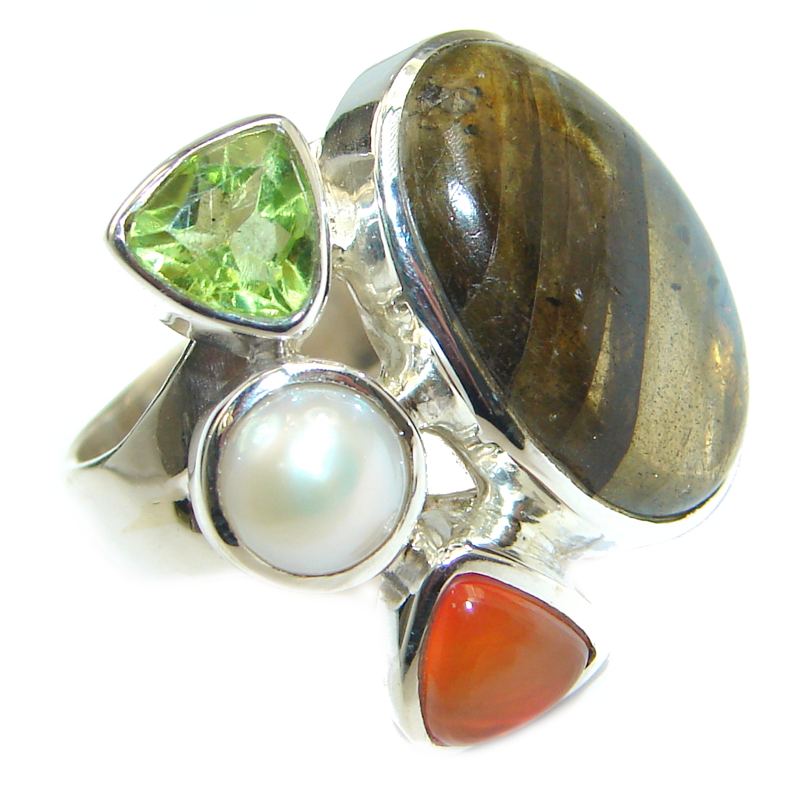 Perfect Labradorite .925 Sterling Silver handmade Ring s. 7 adjustable