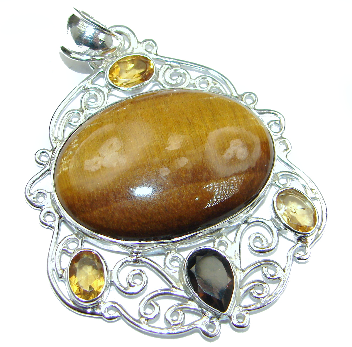 Incredible quality Silky Golden Tigers Eye .925 Sterling Silver handmade Pendant