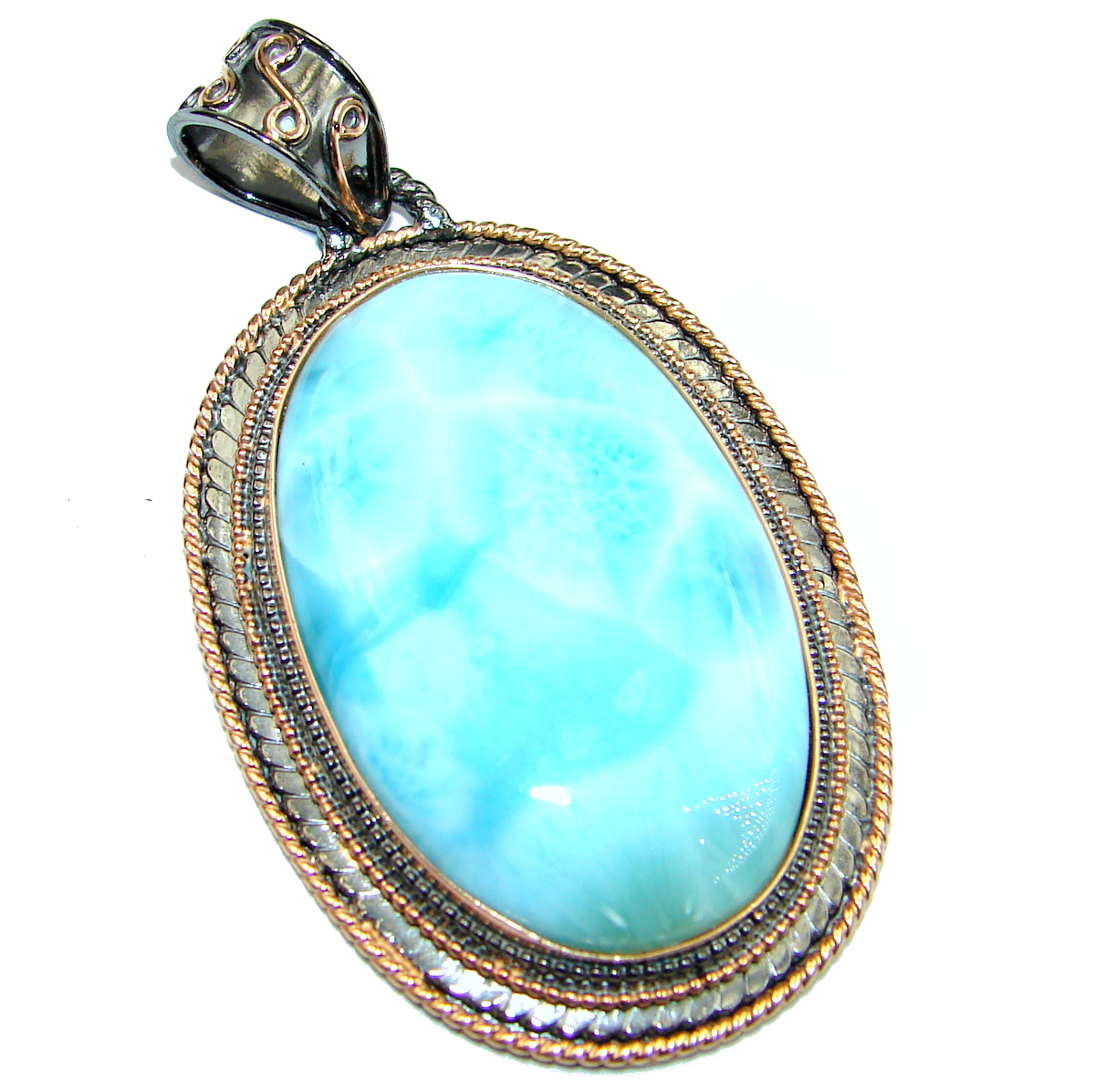 Blue Galaxy genuine Larimar Rose Gold over .925 Sterling Silver handmade pendant