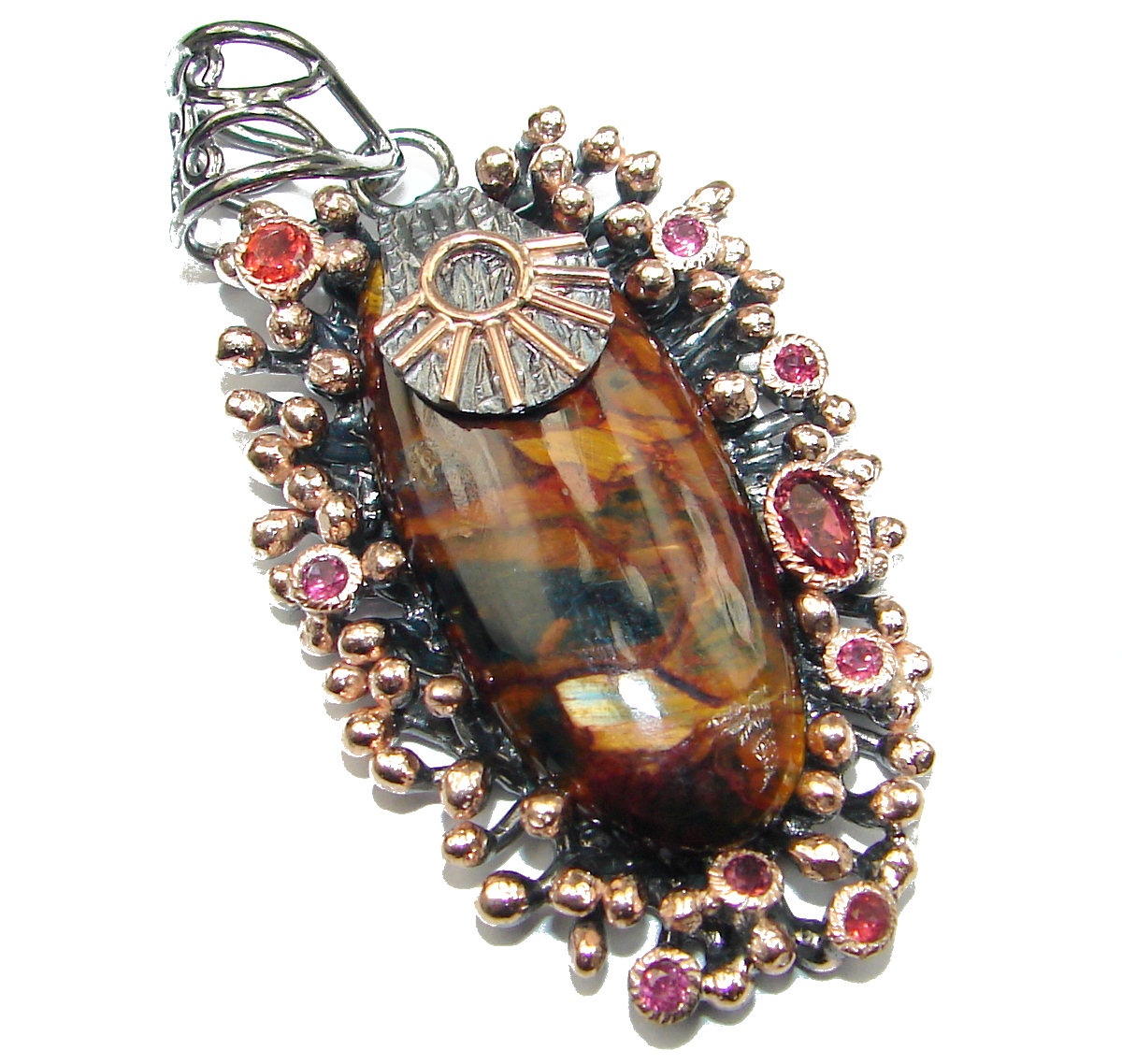 Genuine Silky Black Pietersite 14K Gold over .925 Sterling Silver handmade pendant