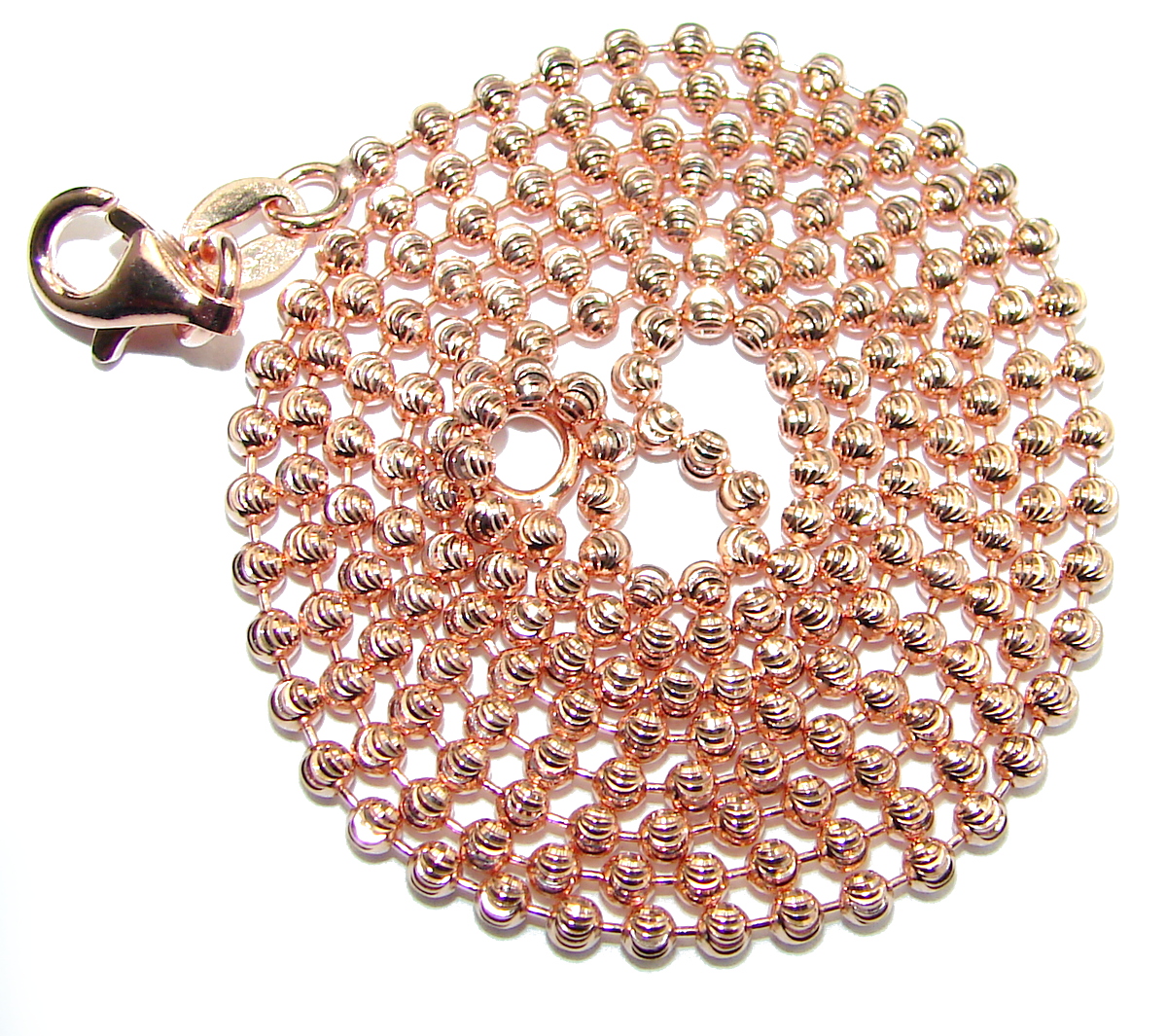 Golden Beads Rose Gold over Sterling Silver Chain 22'' long, 1.5 mm wide