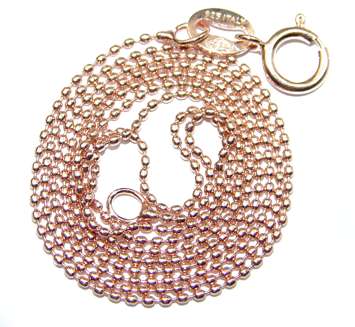 Golden Beads Rose Gold over Sterling Silver Chain 18'' long, 0.5 mm wide