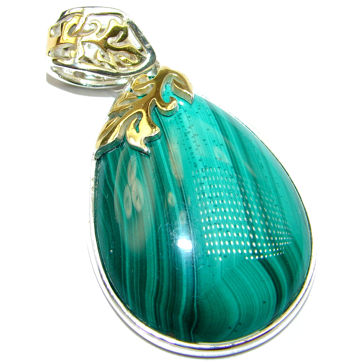 Top Quality Malachite two tones .925 Sterling Silver handmade Pendant