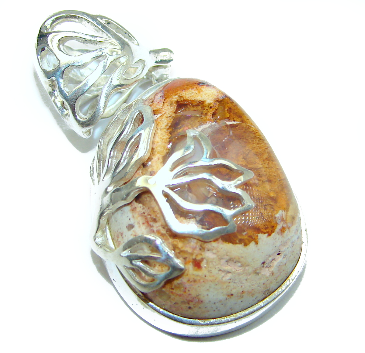 Amazing genuine Crazy Lace Agate .925 Sterling Silver handmade Pendant