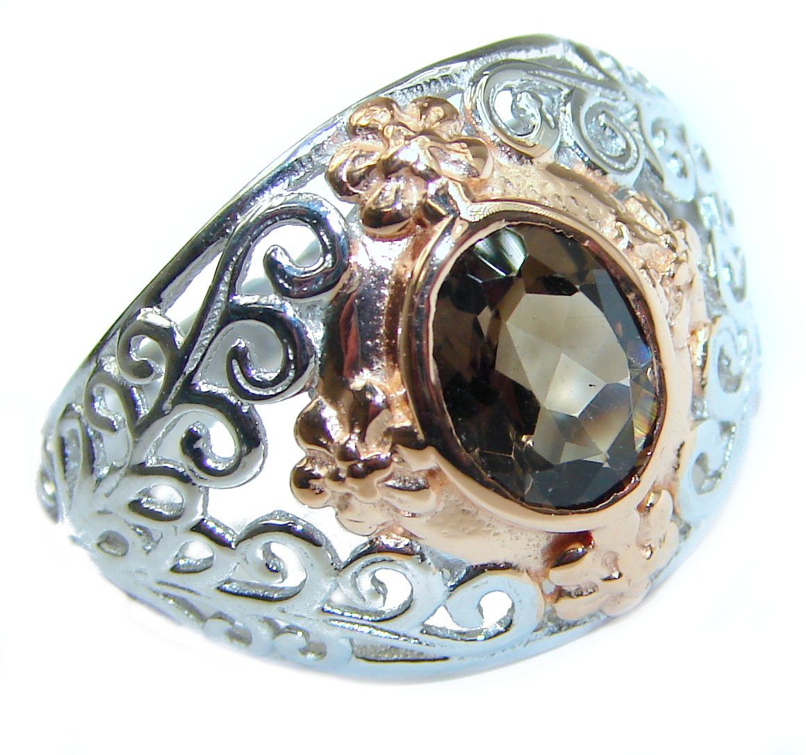 Vintage Style Smoky Topaz .925 Sterling Silver handmade Cocktail Ring s. 7 1/4
