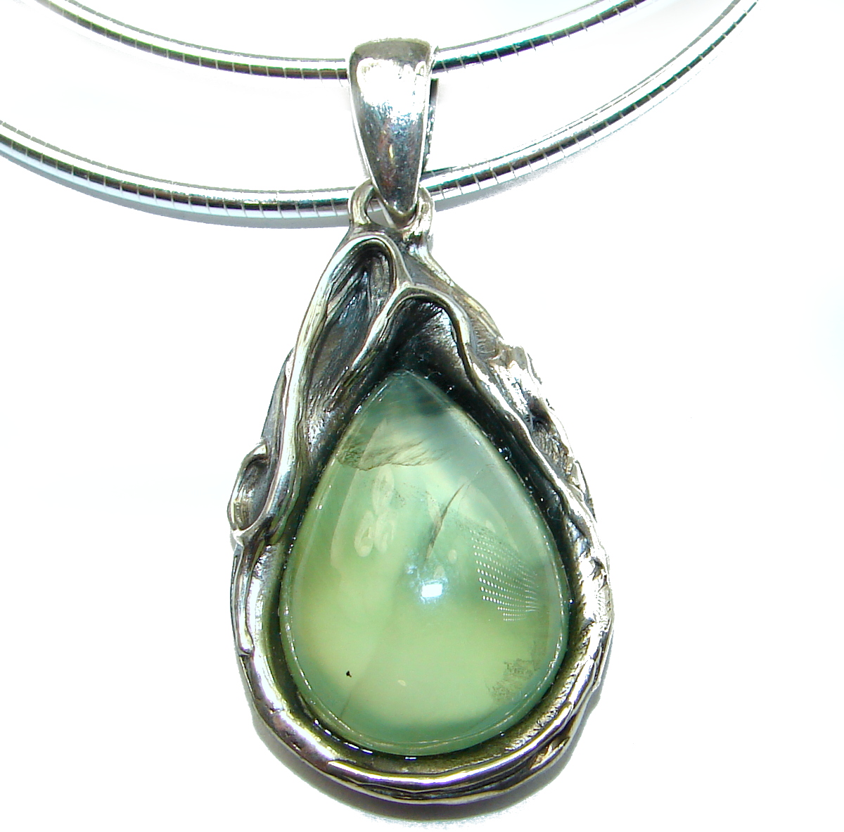 Fine Art Genuine Prehnite .925 Sterling Silver handmade necklace