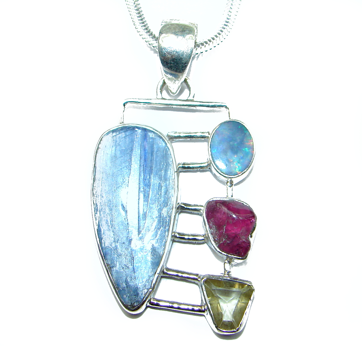 Luxury Larimar Kyanite .925 Sterling Silver handcrafted necklace