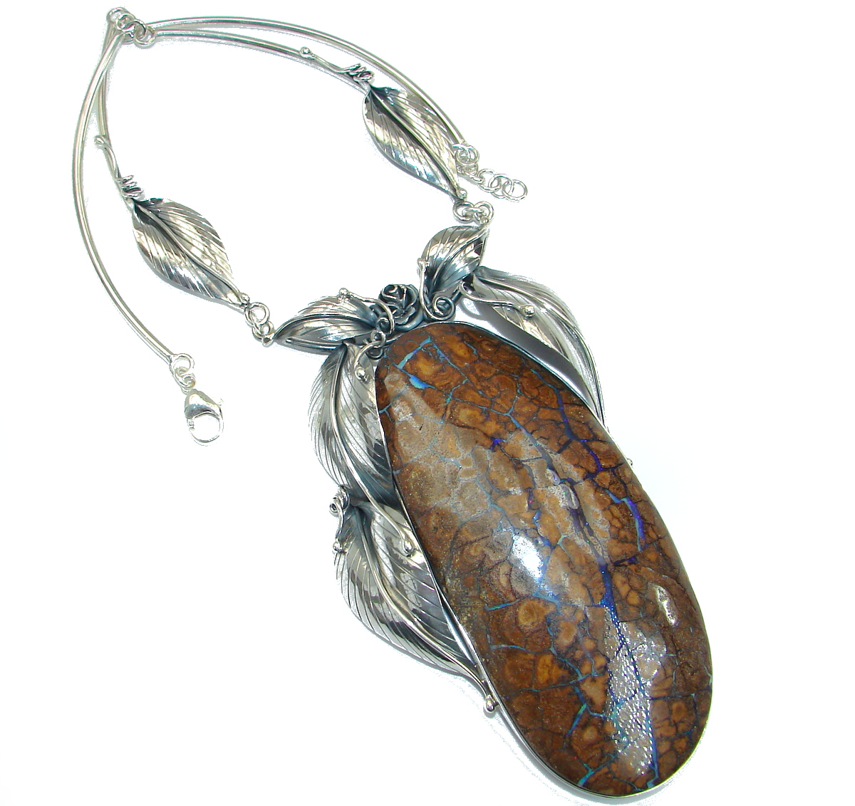 OVERSIZED! Spectacular Rustic Style Australian Boulder Opal .925 Sterling Silver brilliantly handcrafted necklace