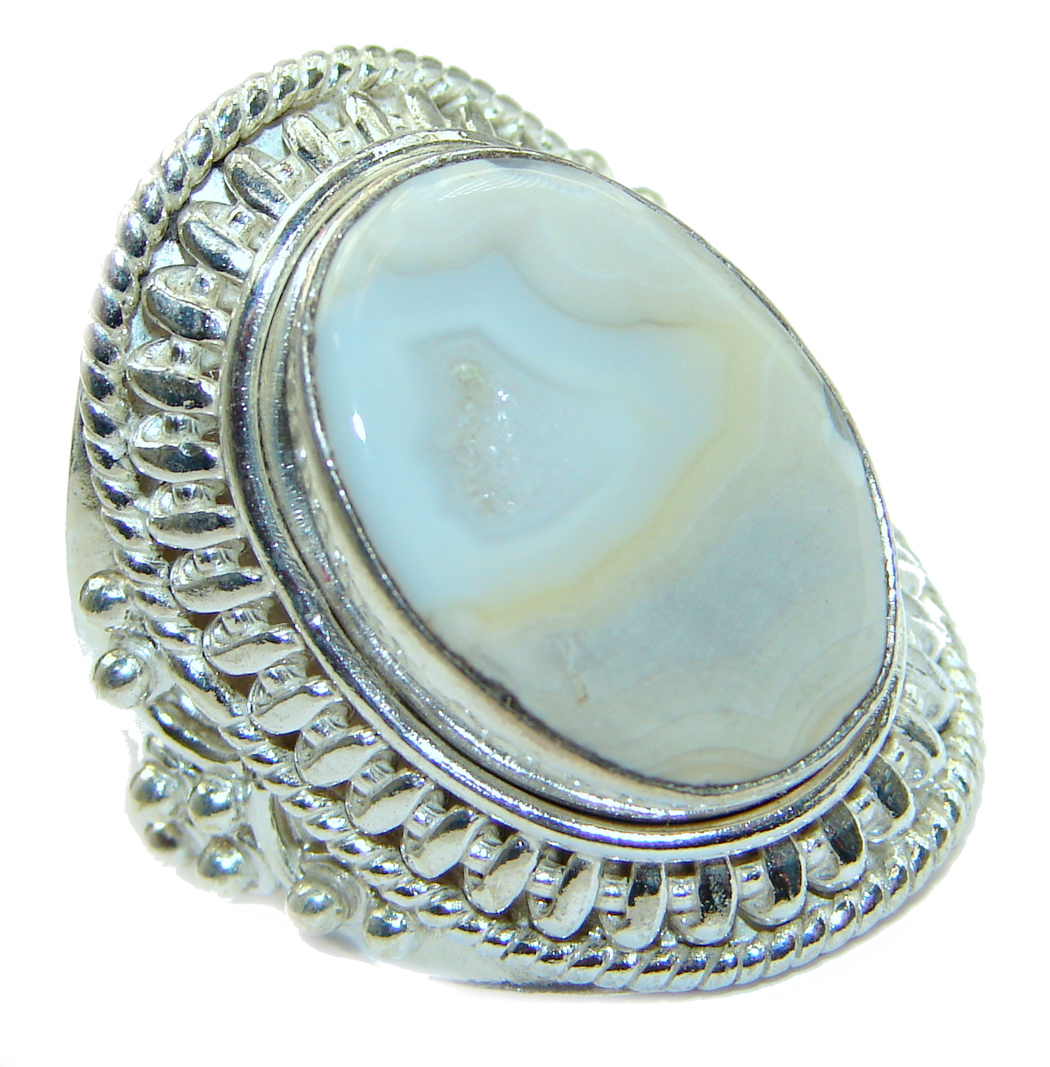 Exotic Druzy Agate .925 Silver Ring s. 9 1/4