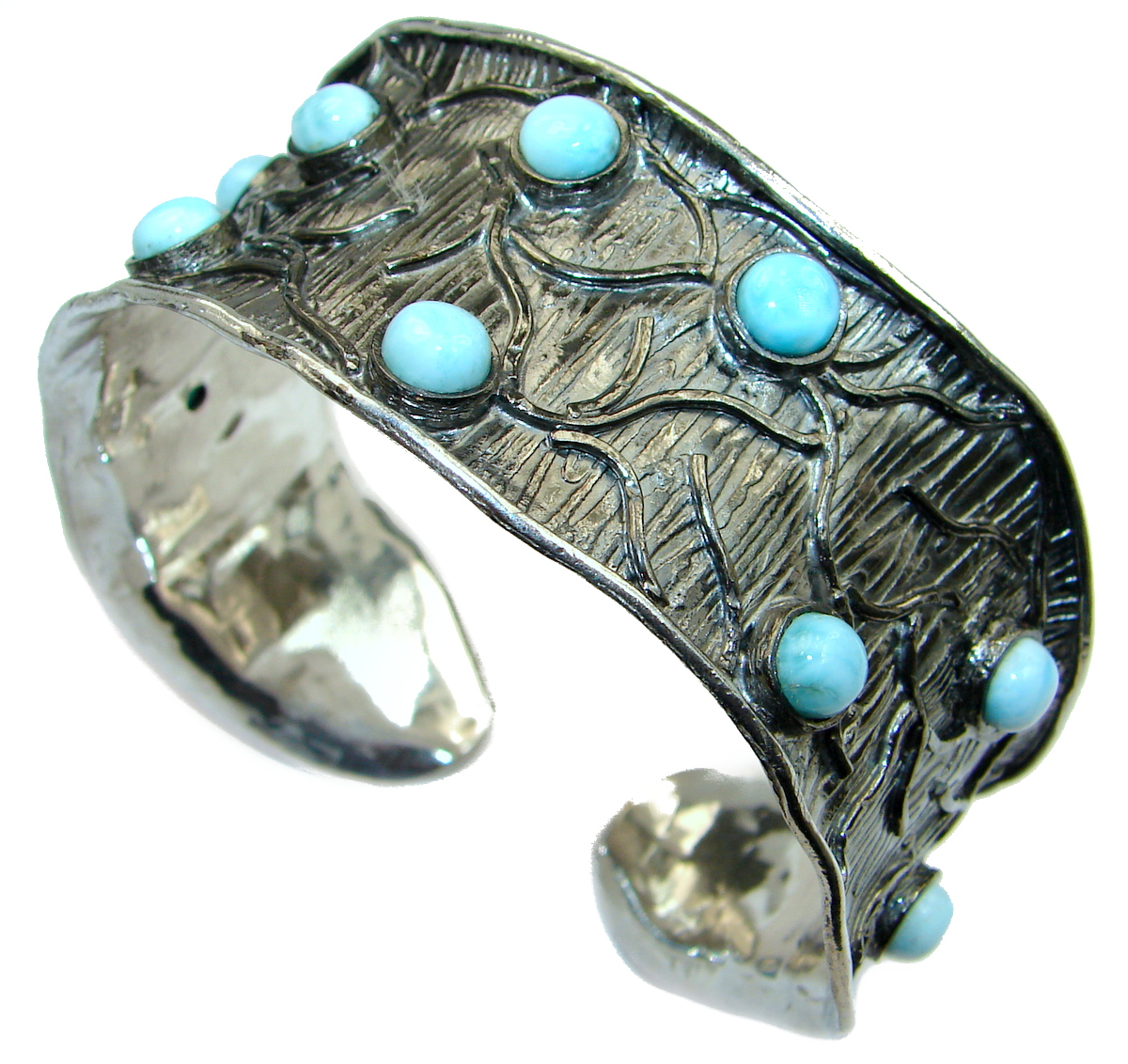 Genuine Blue Larimar Black Rhodium over .925 Sterling Silver handmade Bracelet Cuff