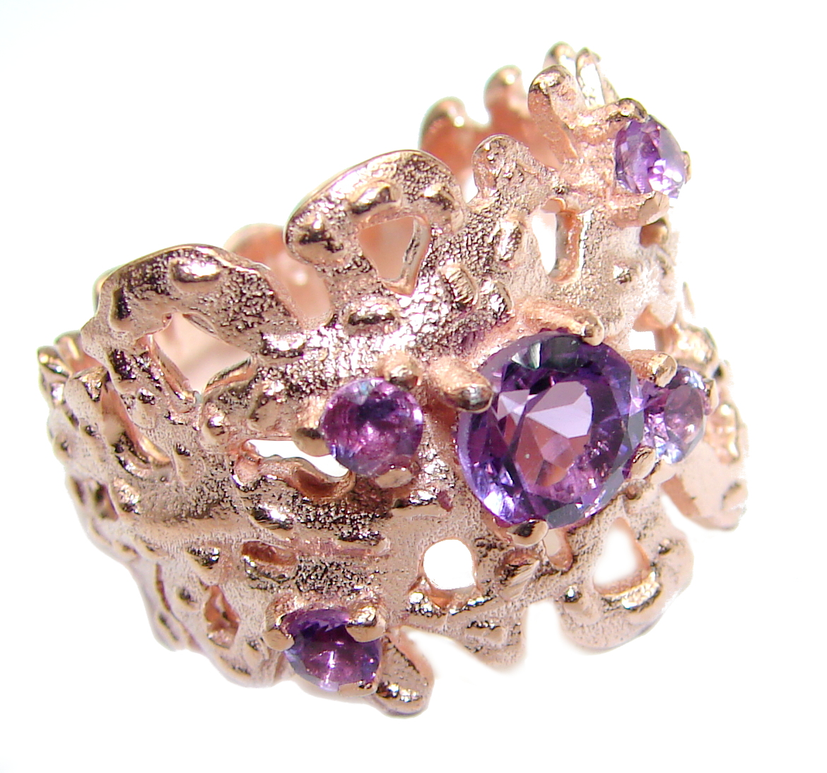 Natural Amethyst Gold over .925 Sterling Silver handmade Cocktail Ring s. 8