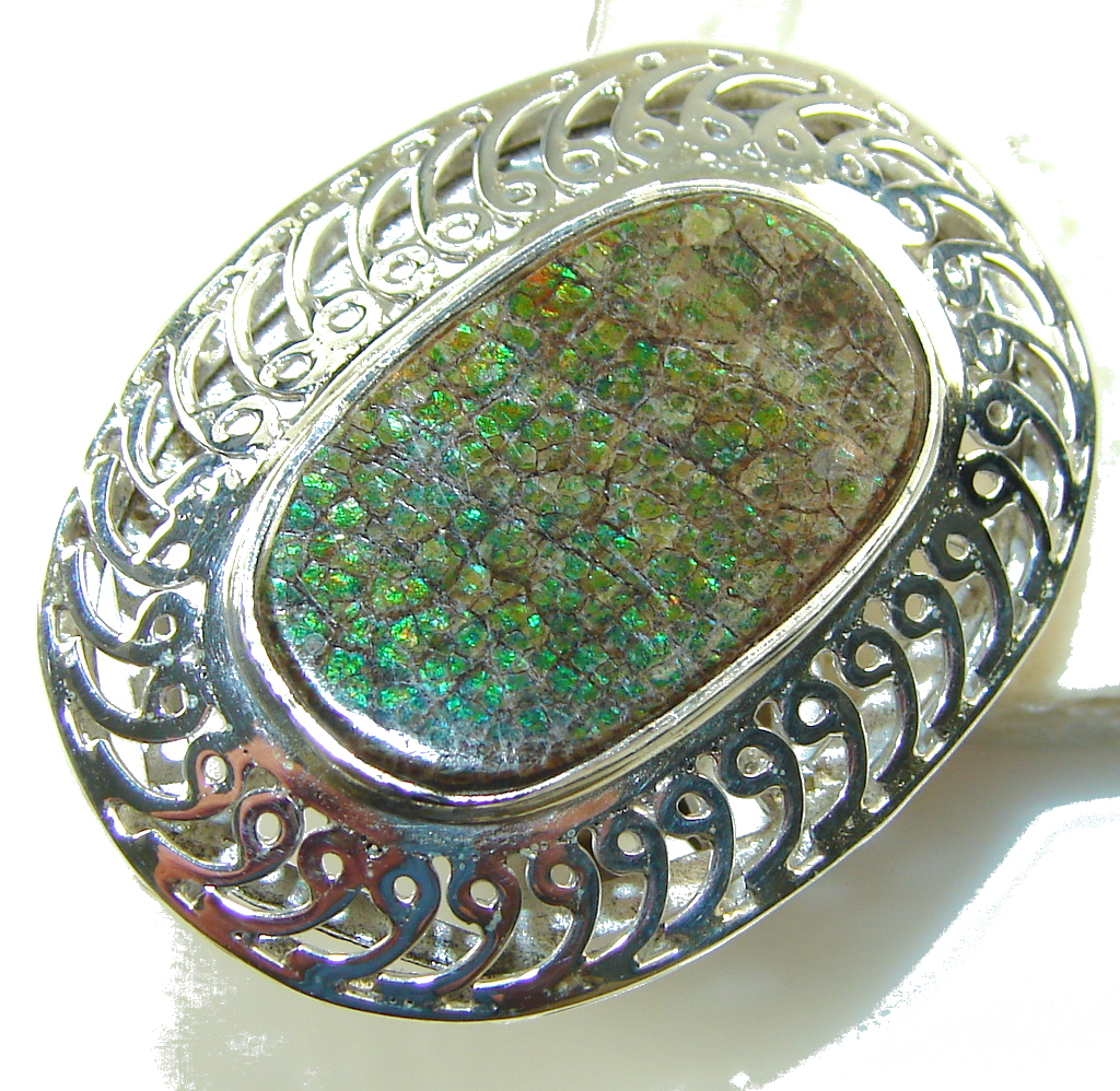 Big! Fabulous Green Ammolite Sterling Silver ring s. 11