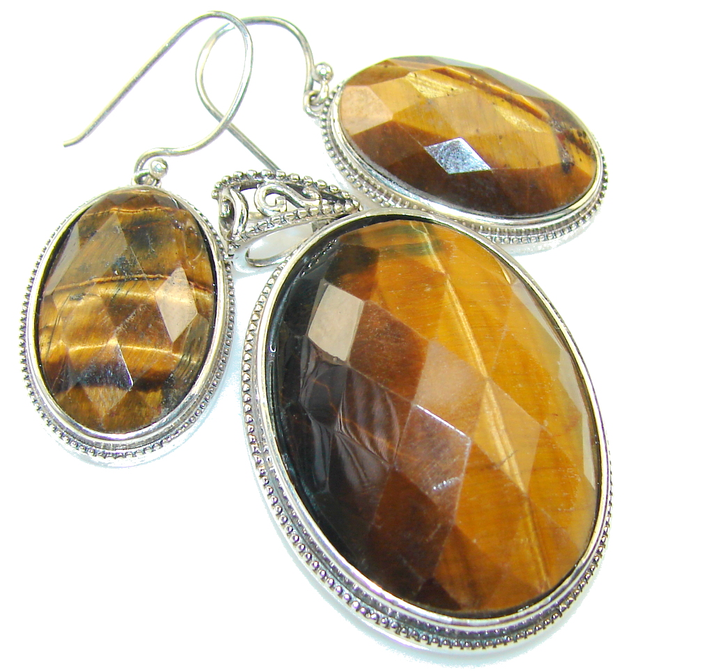 Beautiful Brown Tigers Eye Sterling Silver earrings / Set