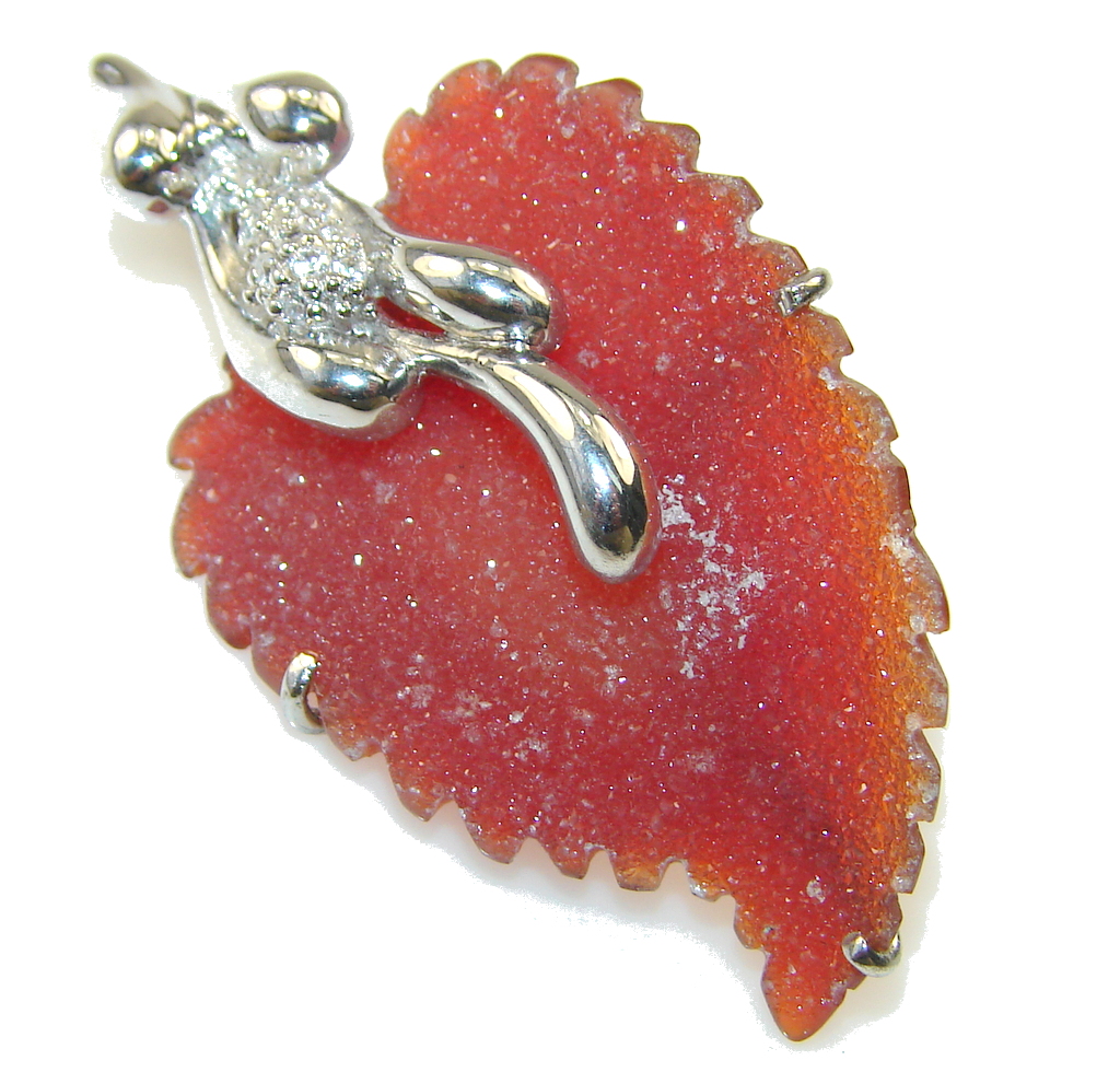 Excellent Brown Agate Druzy Sterling Silver Pendant