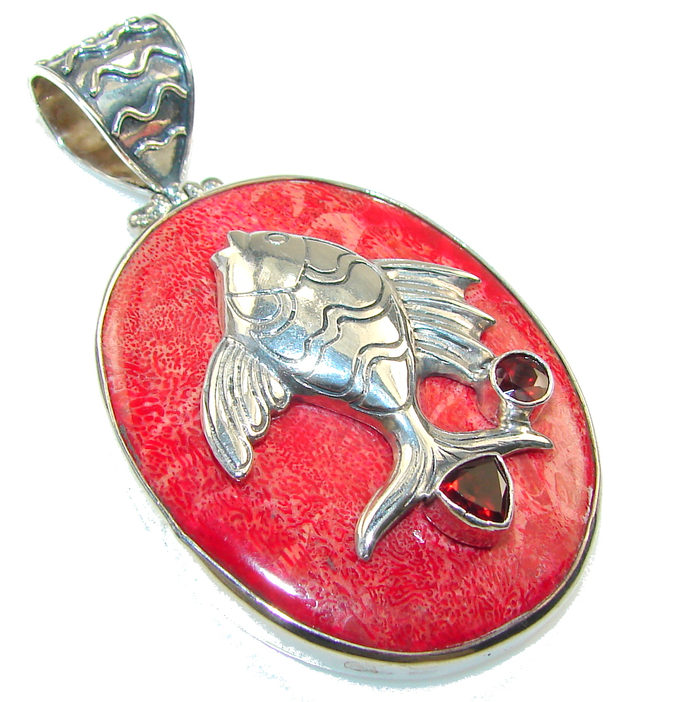 Fabulous Fossilized Coral Fish Sterling Silver pendant