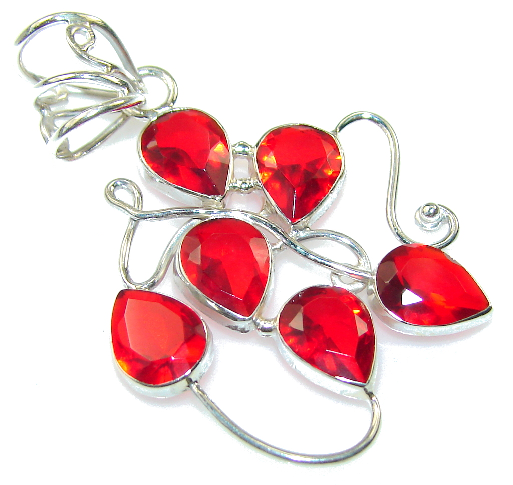 Amazing Created Red Garnet Sterling Silver Pendant