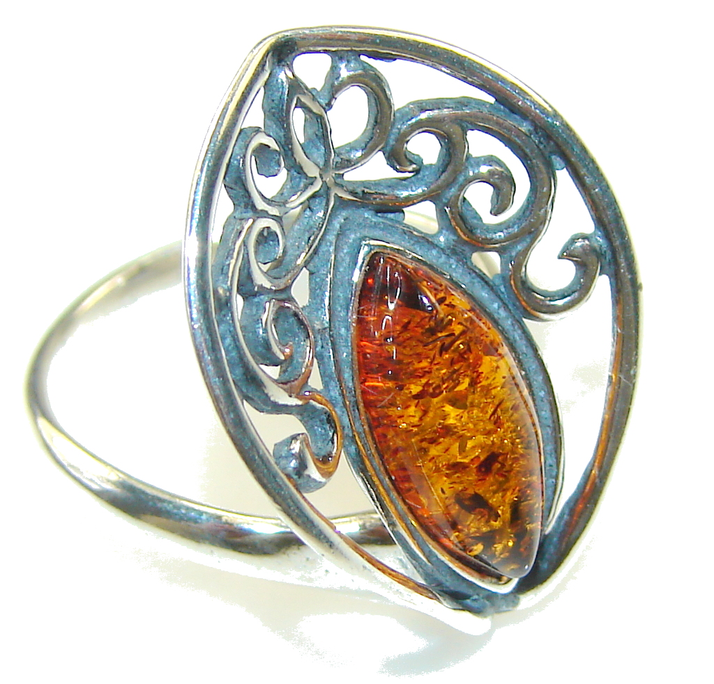 Delicate Brown Polish Amber Sterling Silver Ring s. 6 1/2