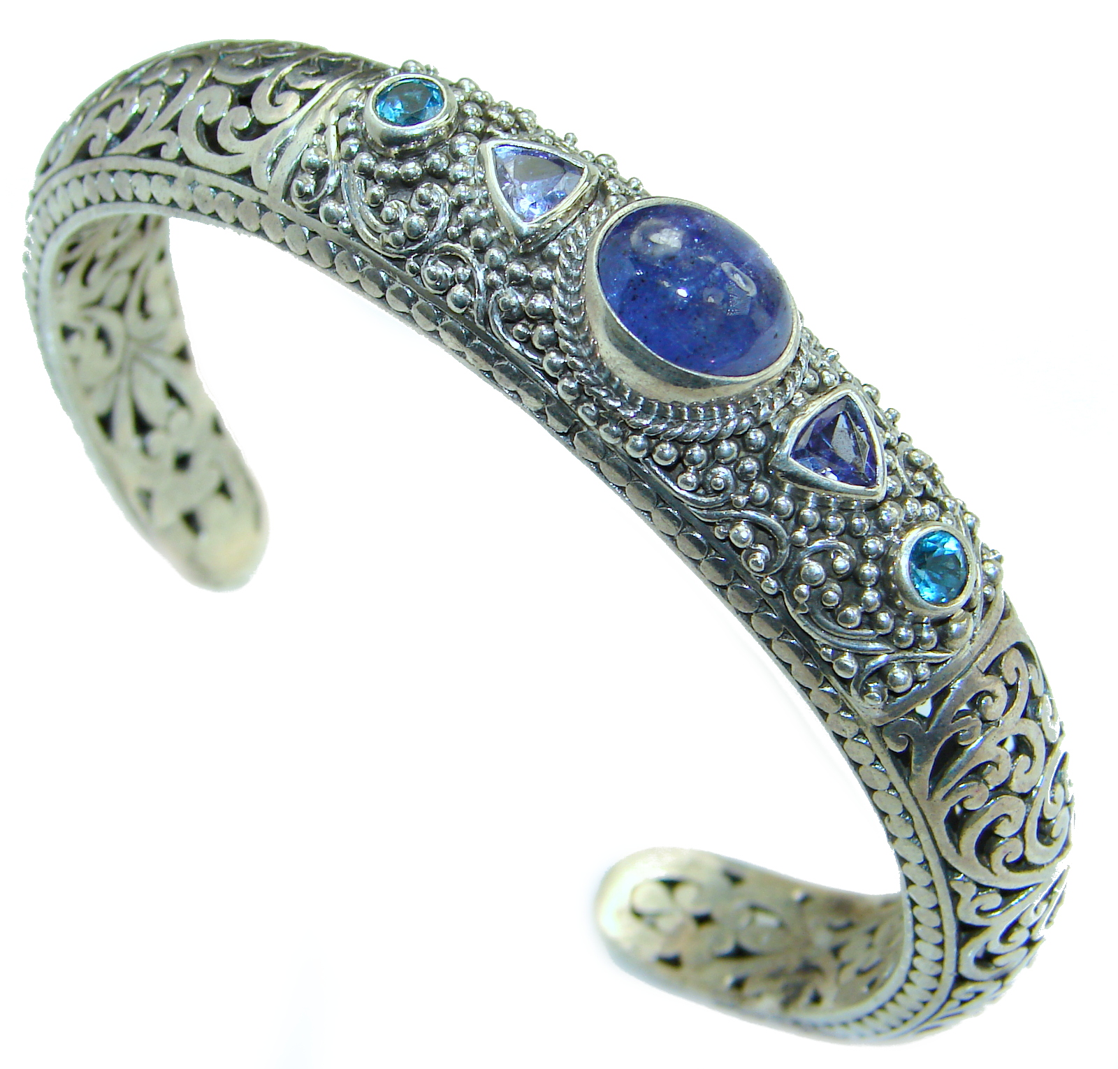 Genuine Tanzanite .925 Sterling Silver handcrafted Bracelet / Cuff