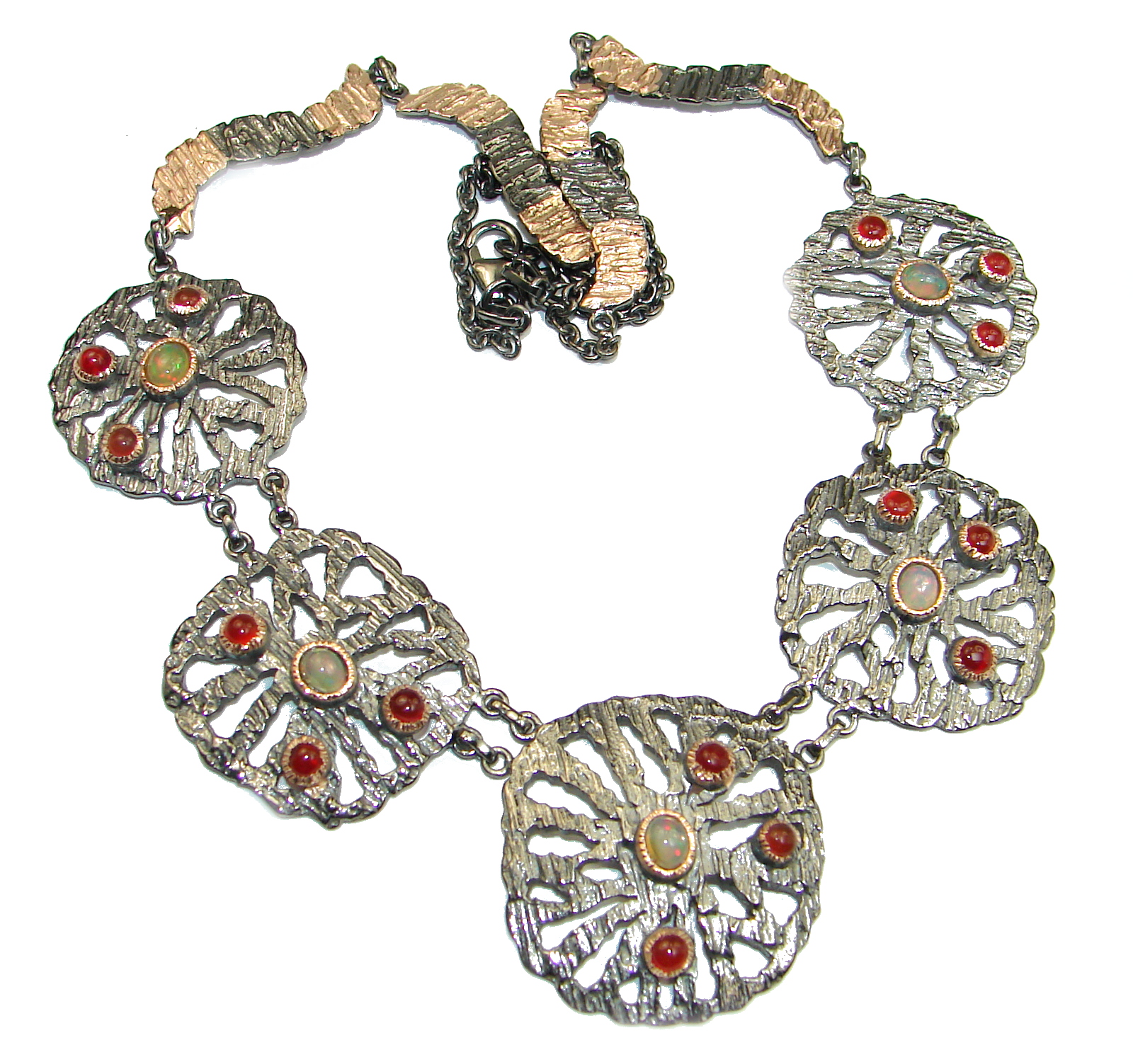 Chunky Ethiopian Opal Rhodium Gold over .925 Sterling Silver handcrafted necklace