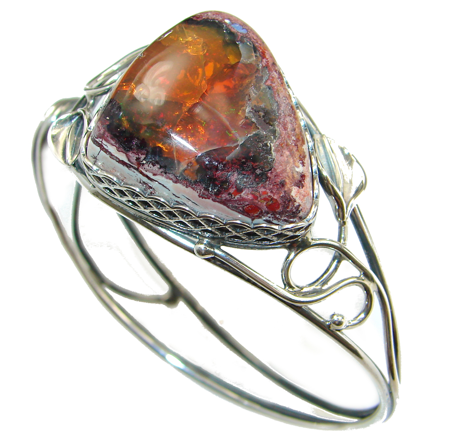 Top Quality Mexican Opal .925 Sterling Silver handmade Bracelet / Cuff