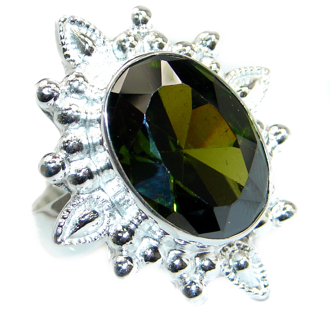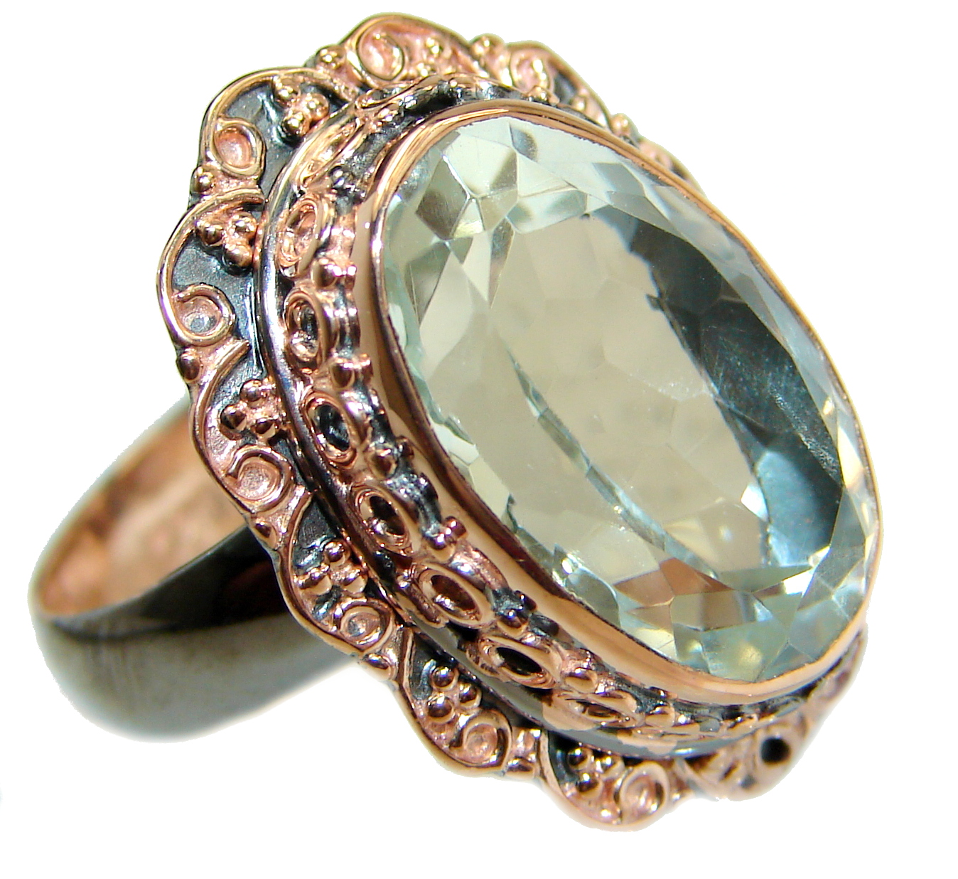 Natural Green Amethyst Gold over .925 Sterling Silver handmade Cocktail Ring s. 8 adjustable