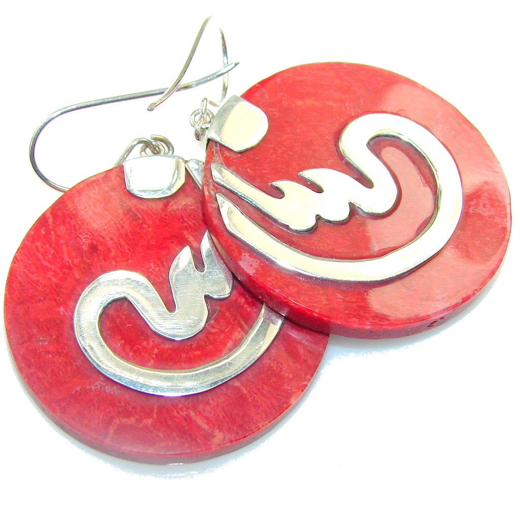 Big!! True Love! Fossilized Coral Sterling Silver earrings
