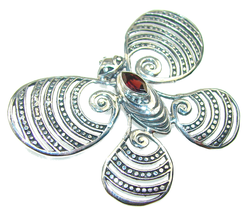 New Design!! Red Garnet Sterling Silver Pendant