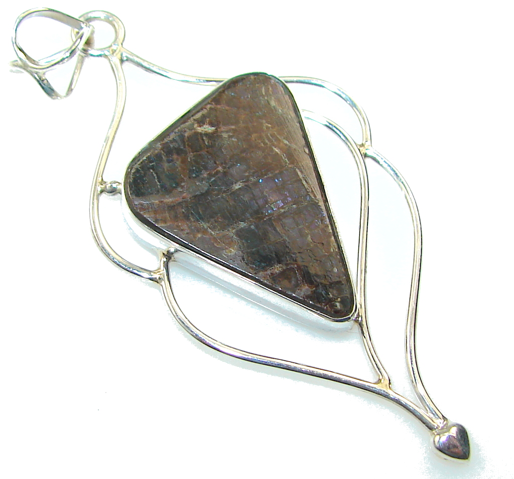 Delicate Blue Ammolite Sterling Silver Pendant