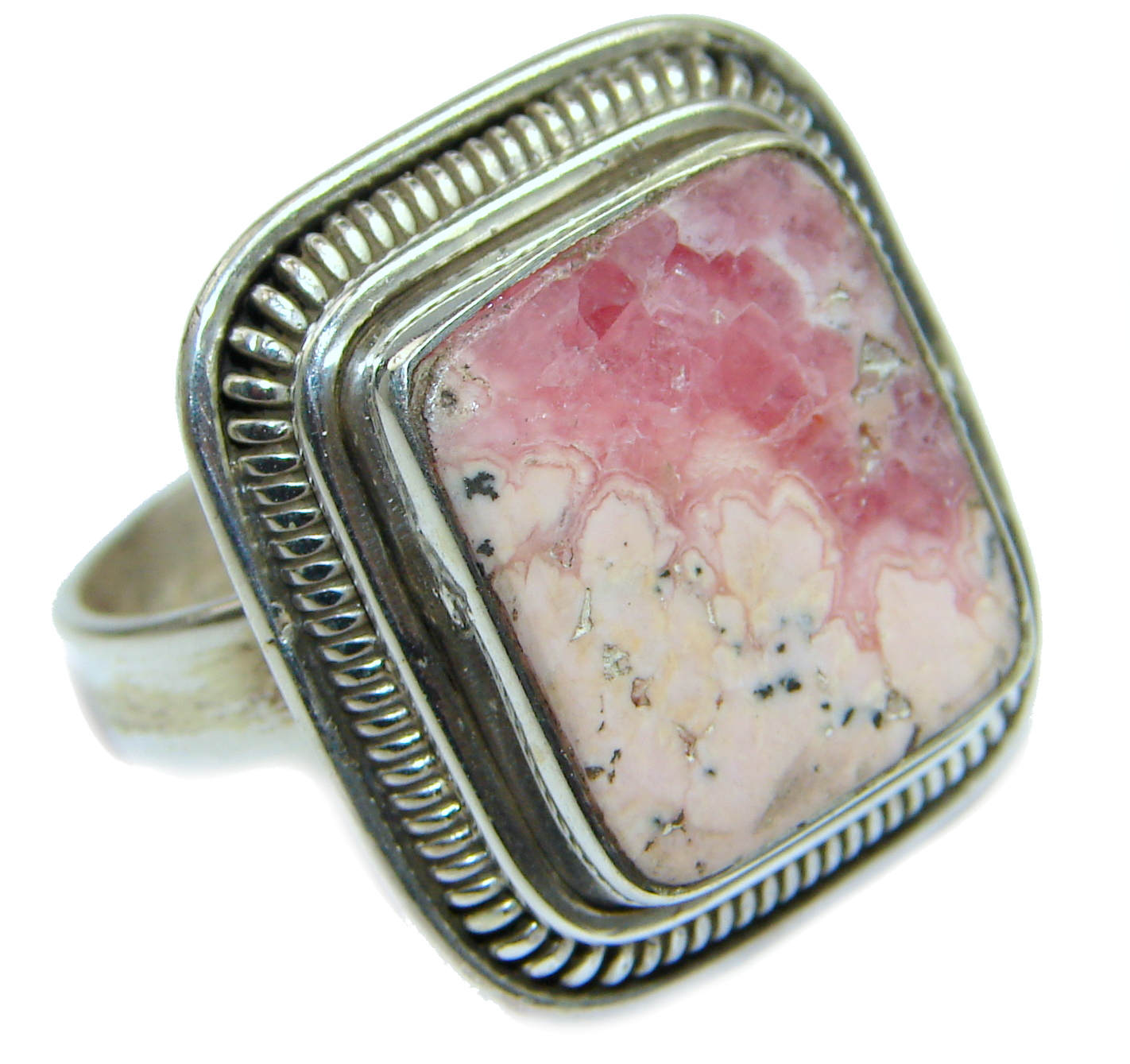 Top Quality Rhodochrosite .925 Sterling Silver handmade ring size 11