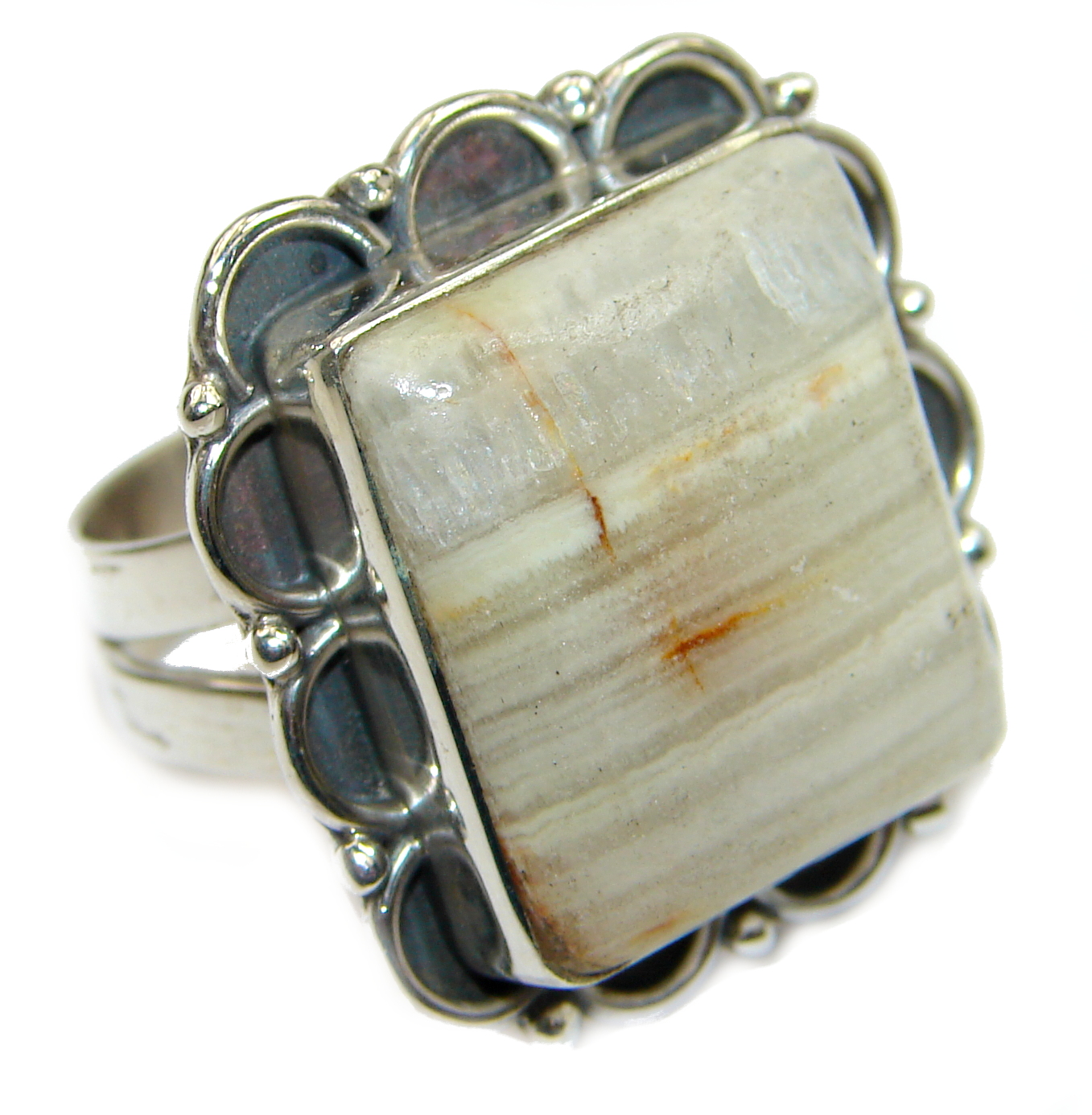 Excellent quality Crazy Lace Agate .925 Sterling Silver Ring s. 7 3/4