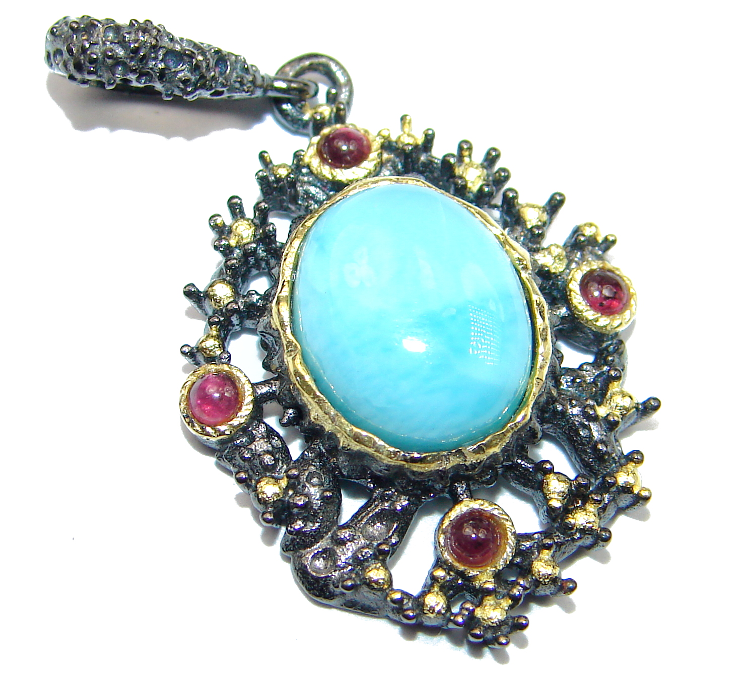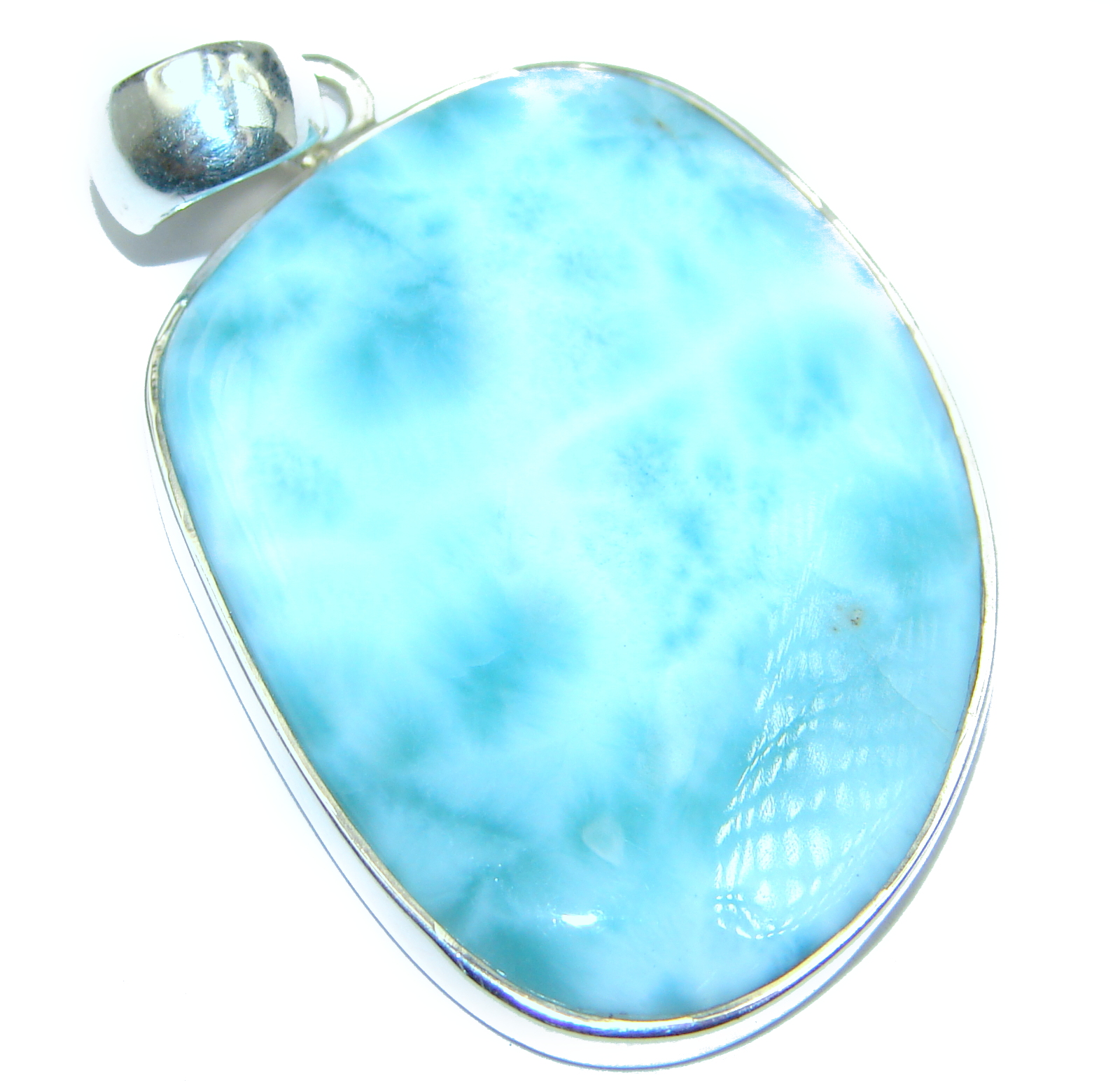 Huge Royal Caribbean Blue Larimar .925 Sterling Silver handmade pendant