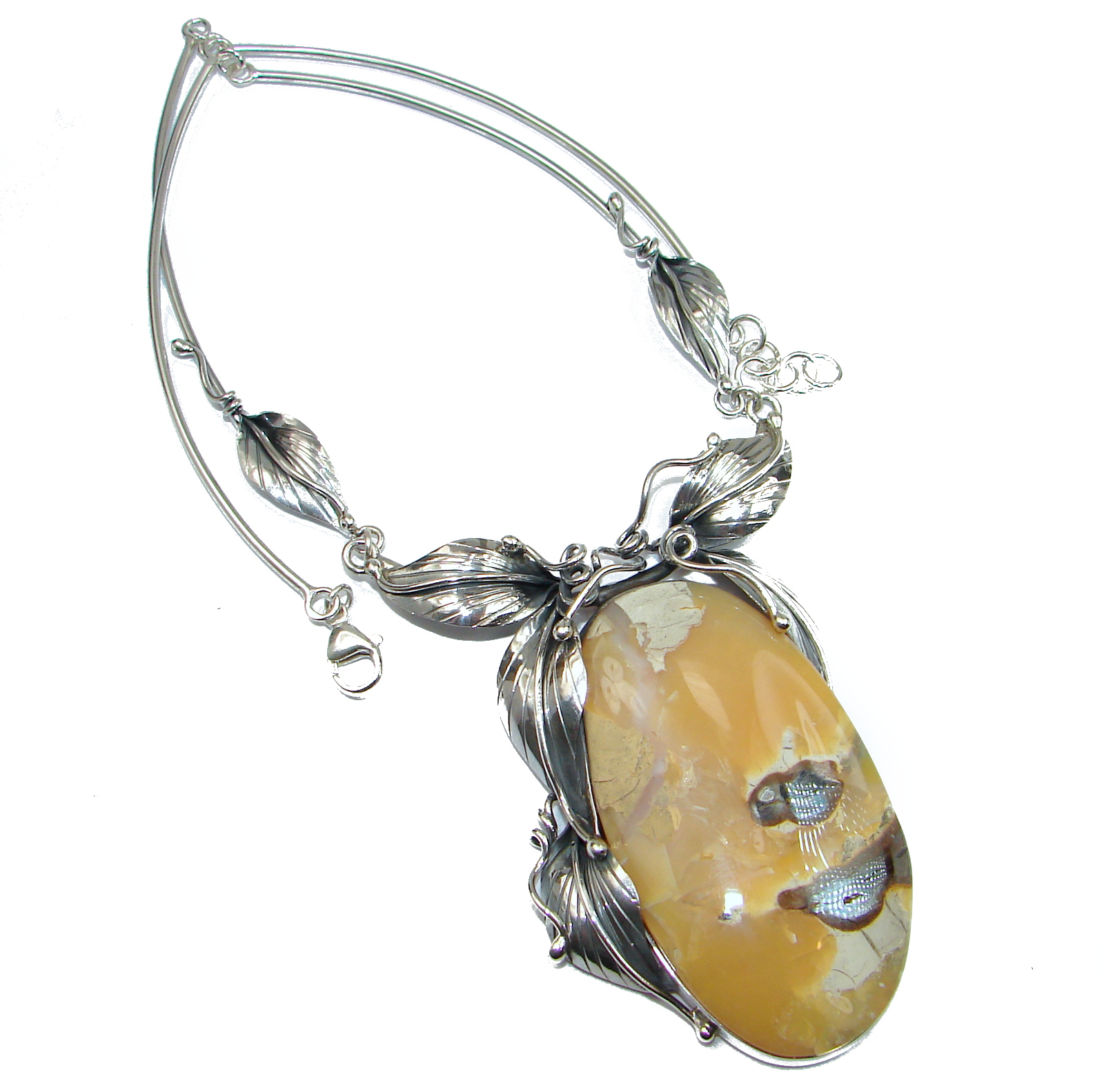 OVERSIZED! Spectacular Rustic Style Australian Boulder Opal .925 Sterling Silver brilliantly handcrafted necklace