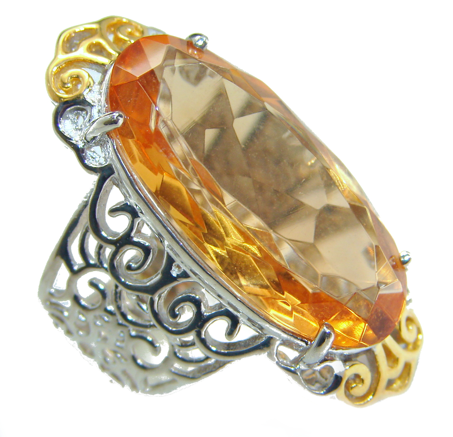 Exotic Golden Topaz two tones .925 Sterling Silver handcrafted Ring s. 6