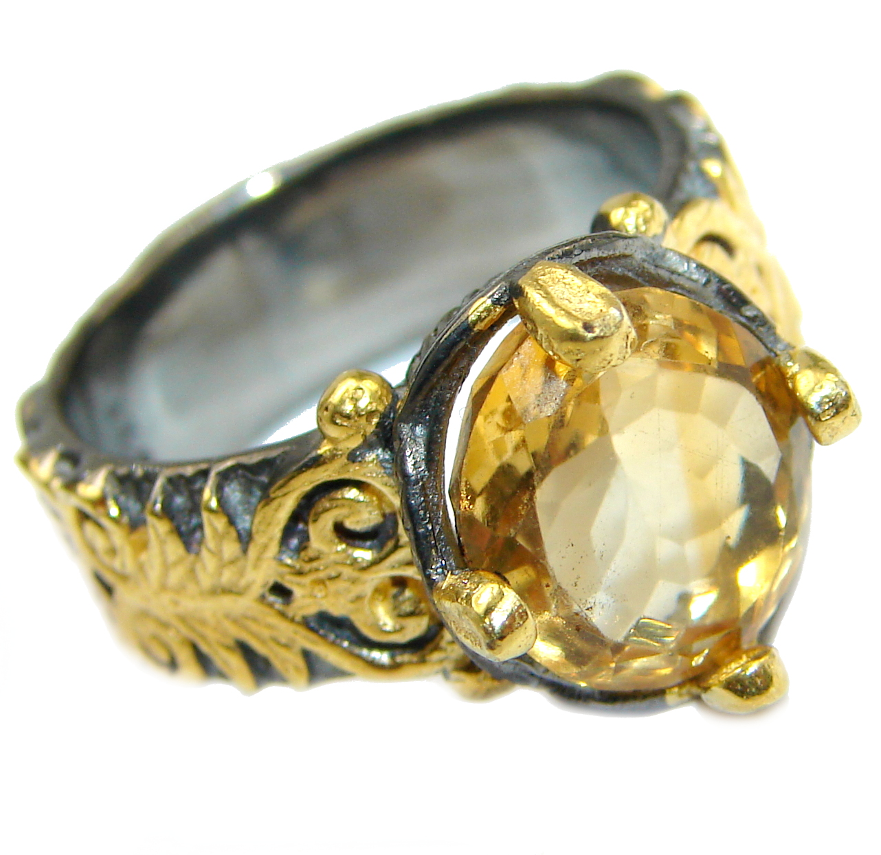 Natural Citrine 14K Gold over .925 Sterling Silver handcrafted Ring s. 7