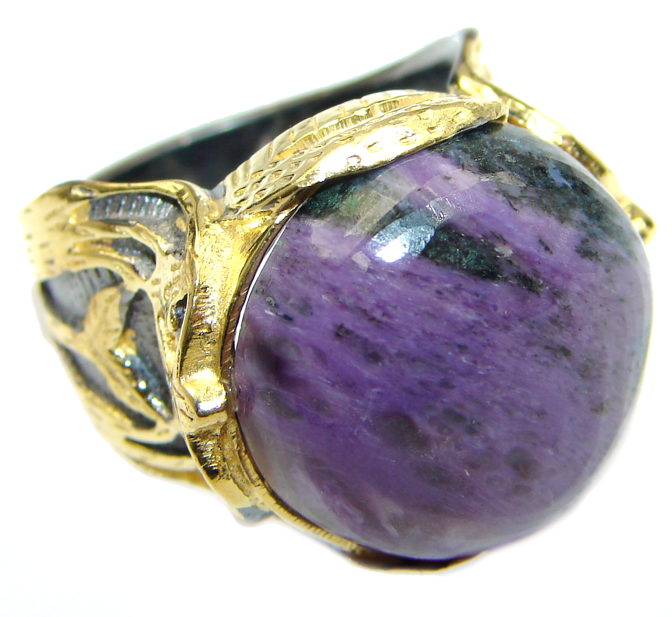Natural Siberian Charoite 14K Gold over .925 Sterling Silver handcrafted ring size 6 1/4